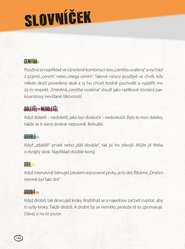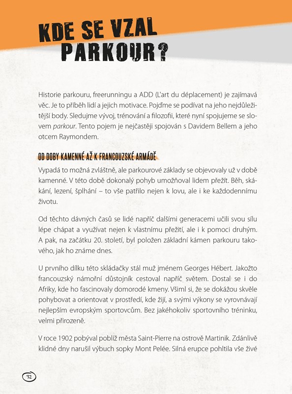 Jestli tě zajímá parkour, chceš s ním začít nebo se o něm zatím jenom něco dozvědět, máš teď skvělou příležitost. V téhle knížce zjistíš, co vlastně parkour je, jak se dá dělat bezpečně i jakou potřebuješ výbavu. Najdeš tu spoustu tipů a nápadů na trénování těla i mysli. A taky se naučíš super parkourové triky. Dozvíš se navíc hodně věcí o světě parkouru, i o tom, jaké má hodnoty.