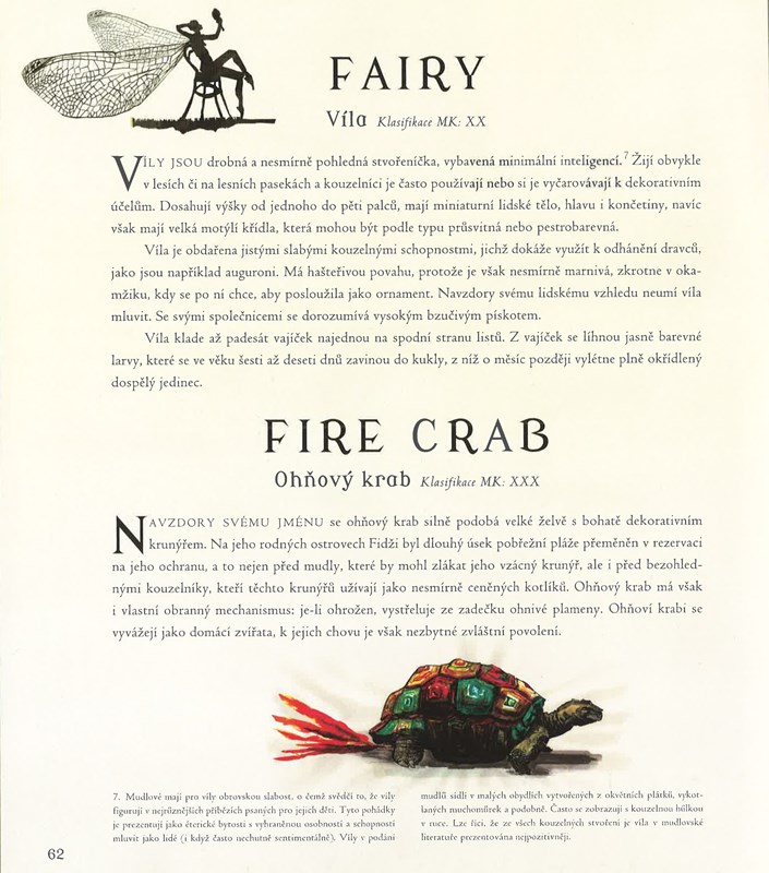 Nádherné nové vydání kouzelnické klasiky z pera Mloka Scamandera samozřejmě představuje pestrou směsici tvorů od Akromantule přes různé druhy draků až po Yettiho, navíc s překrásnými ilustracemi Olivie Lomenech Gillové. Léta dobrodružných putování slavného magizoologa vyústila v díle nezměrného významu. Odborníci jej obdivují, kouzelníci a čarodějky zhusta využívají a od počátku tohoto století do něj zvědavě nahlížejí i mudlové. Naše nové vydání obsahuje novou předmluvu a šest tvorů, kteří se vyskytují v Severní Americe.