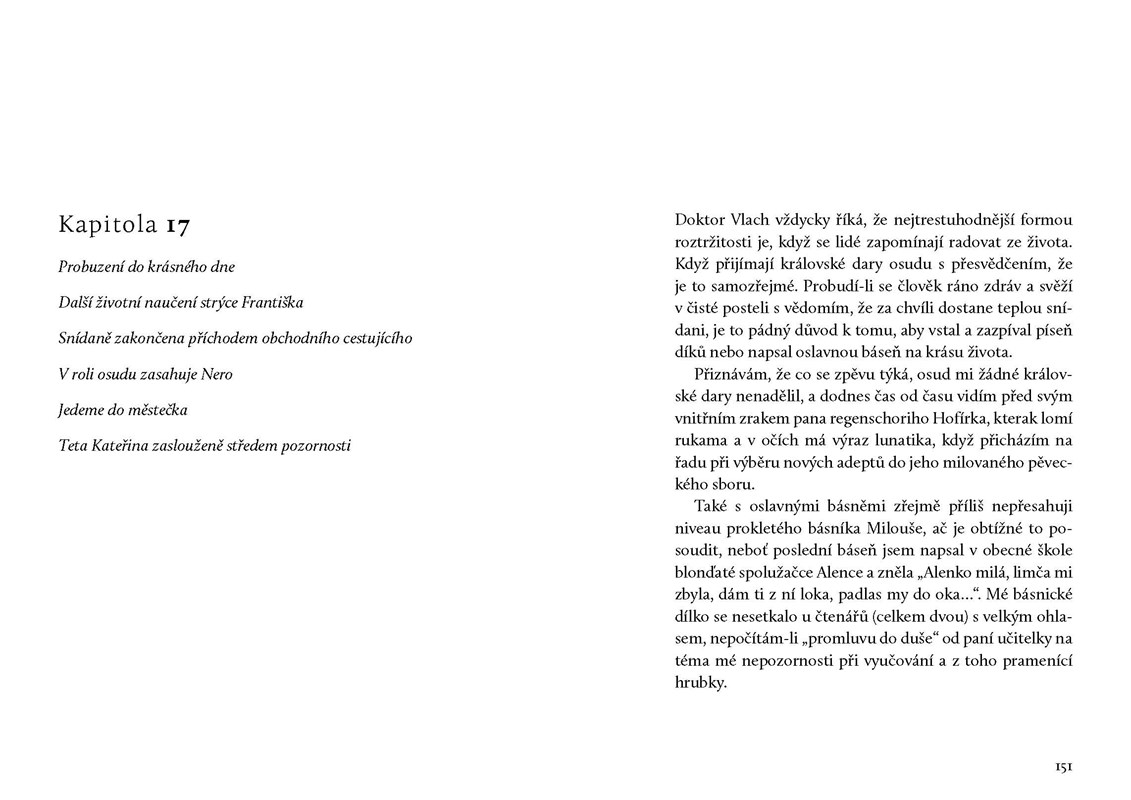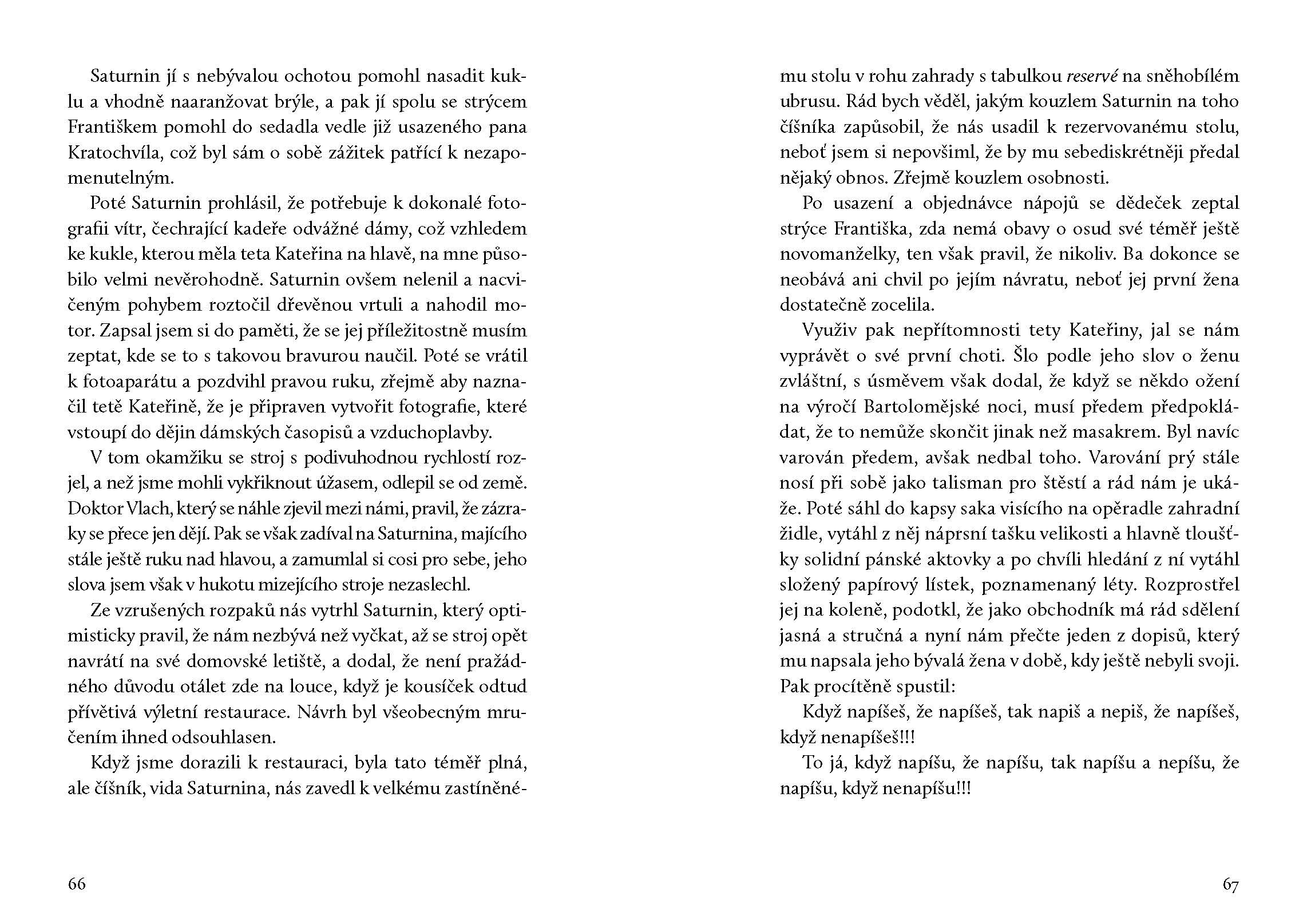 Vykouzlí vám na tváři úsměv vzpomínka na pořekadla nesnesitelné tety Kateřiny, filipiky doktora Vlacha, odvahu slečny Barbory, suchý anglický humor, a především nevypočitatelné nápady a úskoky svérázného sluhy Saturnina? Vaši oblíbení hrdinové jsou zpět! Vzpomeňte si na knihu svého srdce a opět prožijte idylické léto v domě u dědečka, jak jej mistrně podává Miroslav Macek v pokračování Jirotkova nejslavnějšího humoristického románu.