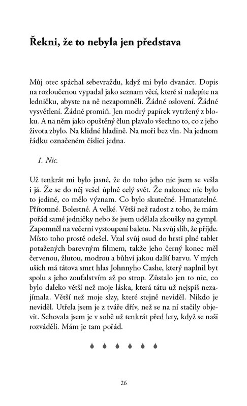 umřel táta, pršelo moře, když umřela máma, pršelo taky a od té doby vlastně prší pořád, i když na tváři ve skutečnosti nemám žádné slzy.
