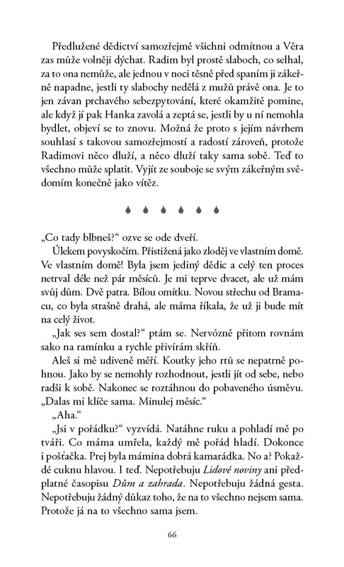Zakloním hlavu a ty kapky, co stékají dolů, chutnají najednou slaně. Prudká letní přeháňka a po ní to ticho tak hezky voní. Máma by řekla, že prší moře. Když jsem jako malá odněkud spadla a začala brečet, to vždycky pršelo moře. Když se naši rozváděli, pršelo moře, když