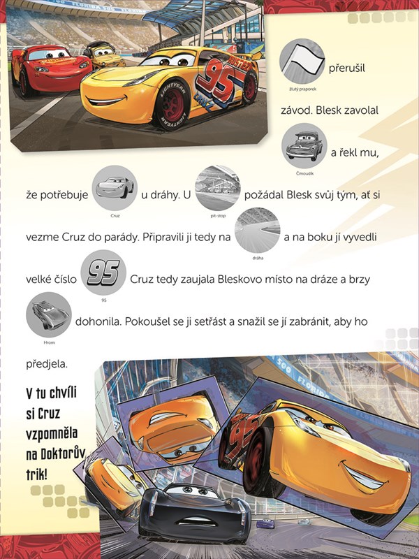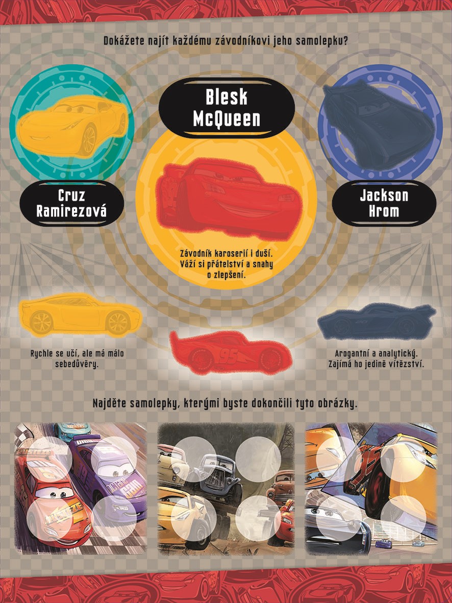 Co se asi událo během spolupráce Bleska McQeena a nováčka, jeho parťačky Cruz, v rámci filmového příběhu Aut 3? Celý příběh si můžete doplnit snímatelnými samolepkami, nebo zapojit svou fantazii a vytvořit pomocí samolepek úplně nové dobrodružství.