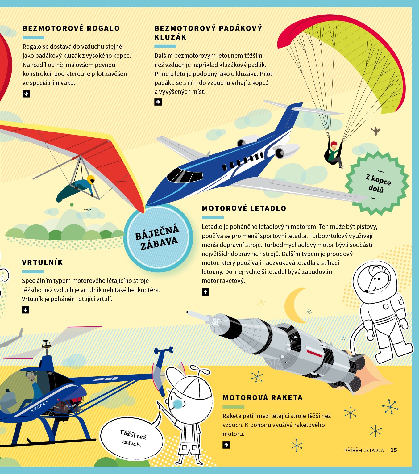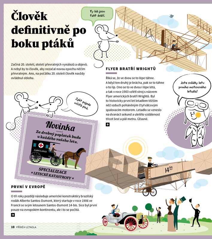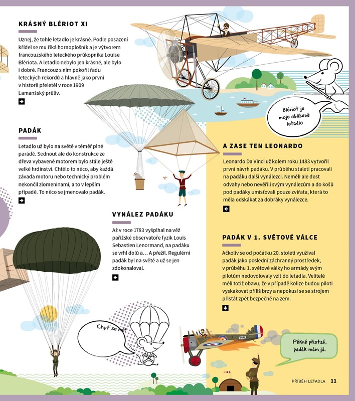 Člověk od nepaměti zasněně hledí na oblohu a pozoruje ptáky. Touží se jim vyrovnat a pozorovat svět z výšky. Nebýt ovšem odvážlivců, kteří to zkusili, možná by lidé ptákům záviděli dodnes. Od prvních naivních pokusů s ptačími křídly přes složitější kluzáky a letadla, která se dokázala udržet ve vzduchu jen pár minut, až po supermoderní nadzvukové letouny uběhla celá staletí. Byl to dlouhý příběh, ale byl to příběh se šťastným koncem. Jak vypadala první letadla a čím vším museli projít průkopníci letectví? Jak se pilotuje letadlo? Jaké rekordy padly v historii letectví? To je jen několik z mnoha otázek na něž dává knihy odpovědi.