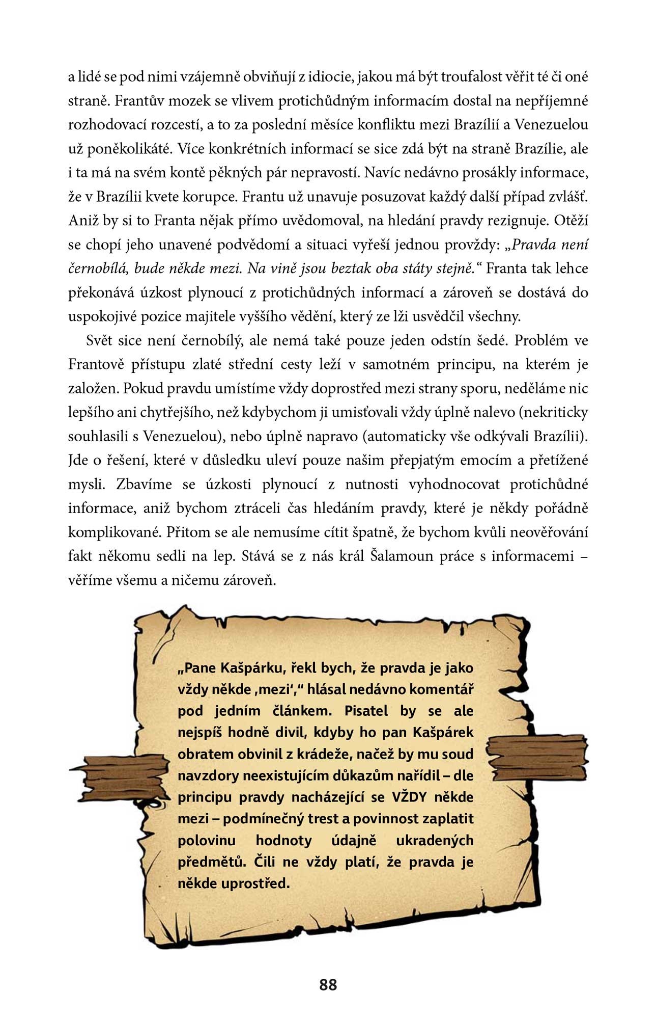 Tato kniha se šikovnou manipulací v samotném názvu vám pomůže najít odpovědi, nebo alespoň poskytne vodítka k přemýšlení nad každodenní záplavou informací, se kterou je dobré se vypořádat kriticky, ale bez zbytečné paranoie.