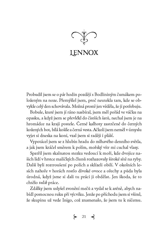 Hlavní ovšem je se seznámit s tím, že to není žádný romantický příběh, ale je kladen velký důraz na pozadí knihy. Nepokoje, hrozící válka a k ní kruté činy, přírodní síly, zapomenutá historie. Přichází akce a na romantické schůzky není čas. Ale pořád je tam to správné kouzlo atmosféry.