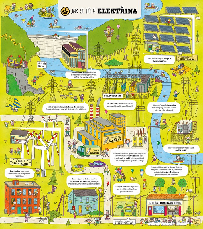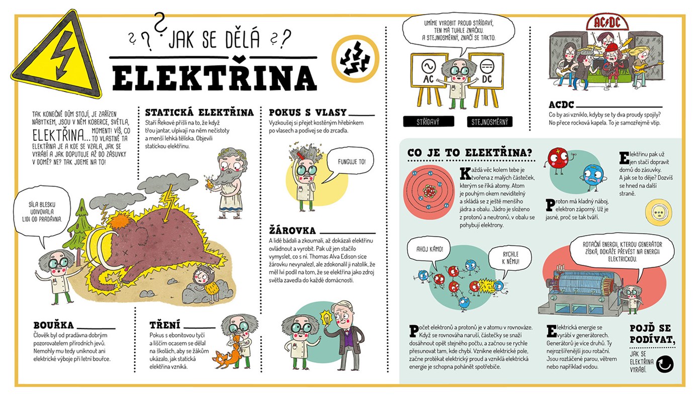 V domě každý den bydlíš a používáš přístroje, které fungují díky elektrické energii. Sedíš u počítače, hraješ svoji oblíbenou počítačovou hru nebo brouzdáš po internetu. V garáží stojí zaparkované auto tvých rodičů, které si koupili za peníze vydělané v zaměstnání. Všechno jsou to věci, se kterými se setkáváš denně a připadají ti samozřejmé. Víš ale, kde se vzaly? Víš, jak se dělají a kolik lidí se na jejich výrobě podílí? Víš, proč je na Internetu tolik zajímavých informací a kdo je vytvořil? Tušíš, kolik lidí musí spolupracovat, aby vznikl dům, ve kterém bydlíš? Máš představu, kde a jak se vyrábí papírové nebo kovové peníze? Tato kniha ti zodpoví uvedené otázky, ještě přidá pár odpovědí navíc a k tomu všemu se tě po celou dobu bude snažit pobavit.