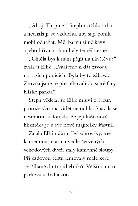 Stephanie je nešťastná. Musí se rozloučit s poníkem, na kterém jezdila odmalička. Je už moc velká a on ji neunese. Když ale potká kouzelného poníka Oriona, trápení a smutek rázem zmizí. Najednou už není sama. Má nového kamaráda, se kterým jistě zažije spoustu dobrodružství.