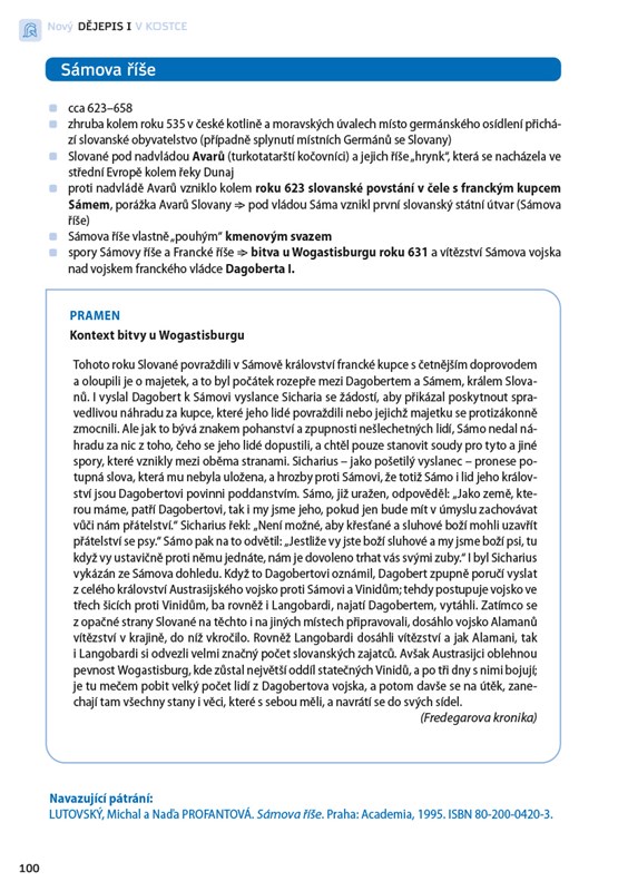 • Ukázky písemných pramenů, grafy a mapy, podněty k dalšímu studiu