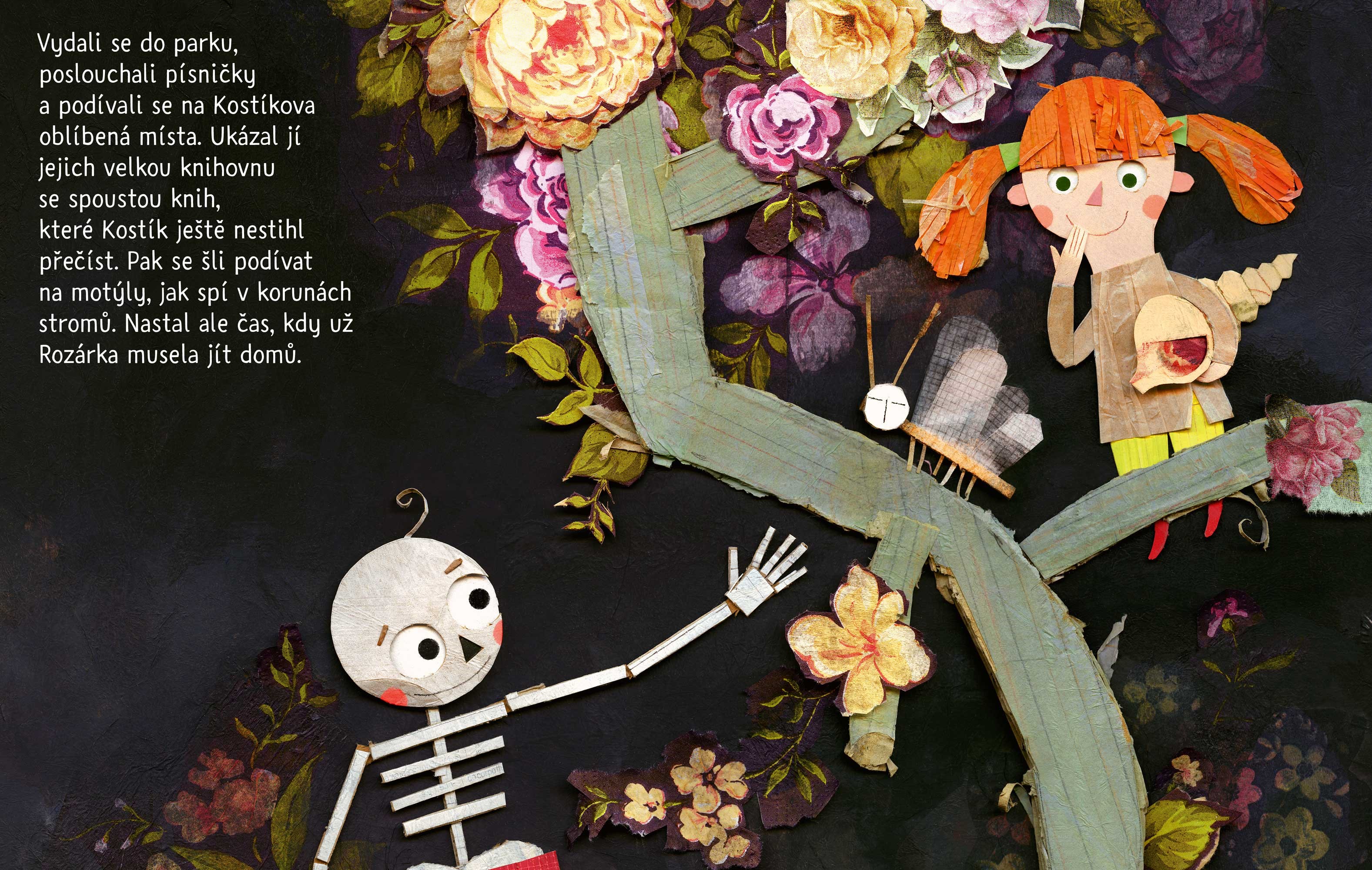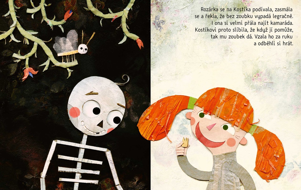 Seznamte se s Kostíkem, malou schoulenou kostřičkou, která může působit trochu smutně. Ale nebojte! Vše se v dobré obrátí, když Kostík potká stejně osamělou holčičku Rozárku. Pro oba je jejich setkání začátkem mimořádného přátelství, ve kterém se prolíná svět živých a mrtvých. Společně vám ukážou, že každý ze světů je svým způsobem krásný, potřebný a vůbec ne děsivý.