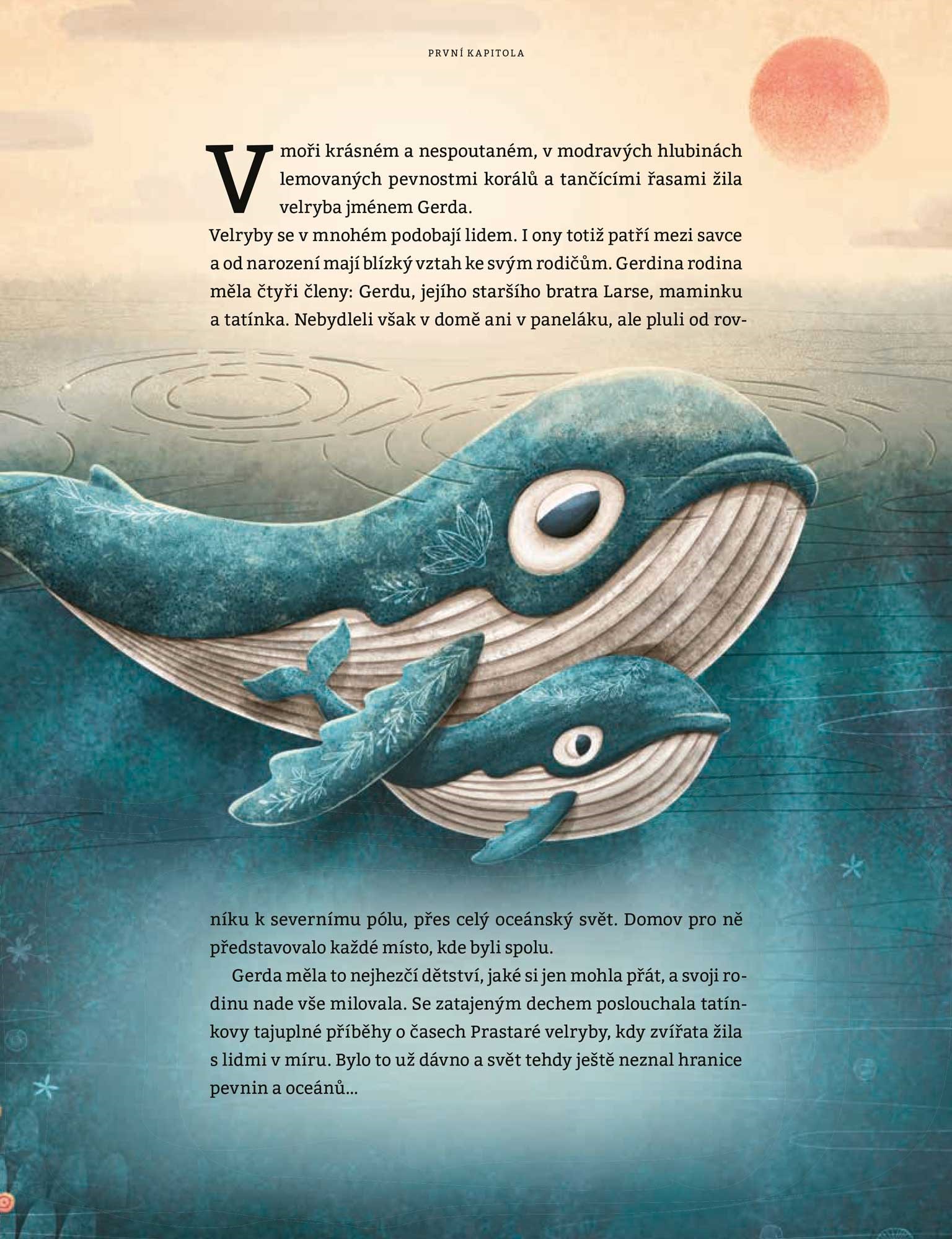 Malá velryba Gerda si užívá spokojené dětství. Jednou se však přihodí něco nečekaného a Gerda zůstane sama, bez rodiny. A tak osamocená a smutná bloudí oceánem, až nakonec potká nové přátele. Kosatky, tučňáky, racky nebo třeba chobotnice. Od každého kamaráda se dozví nejen zajímavosti o jejich životě, ale především o fascinujícím světě, kterým proplouvá. Najde nakonec malá Gerda to, co hledá?
