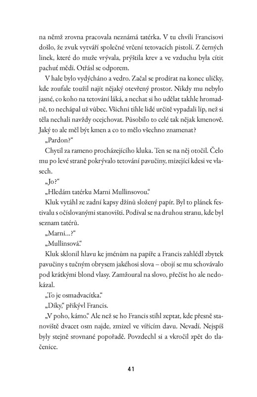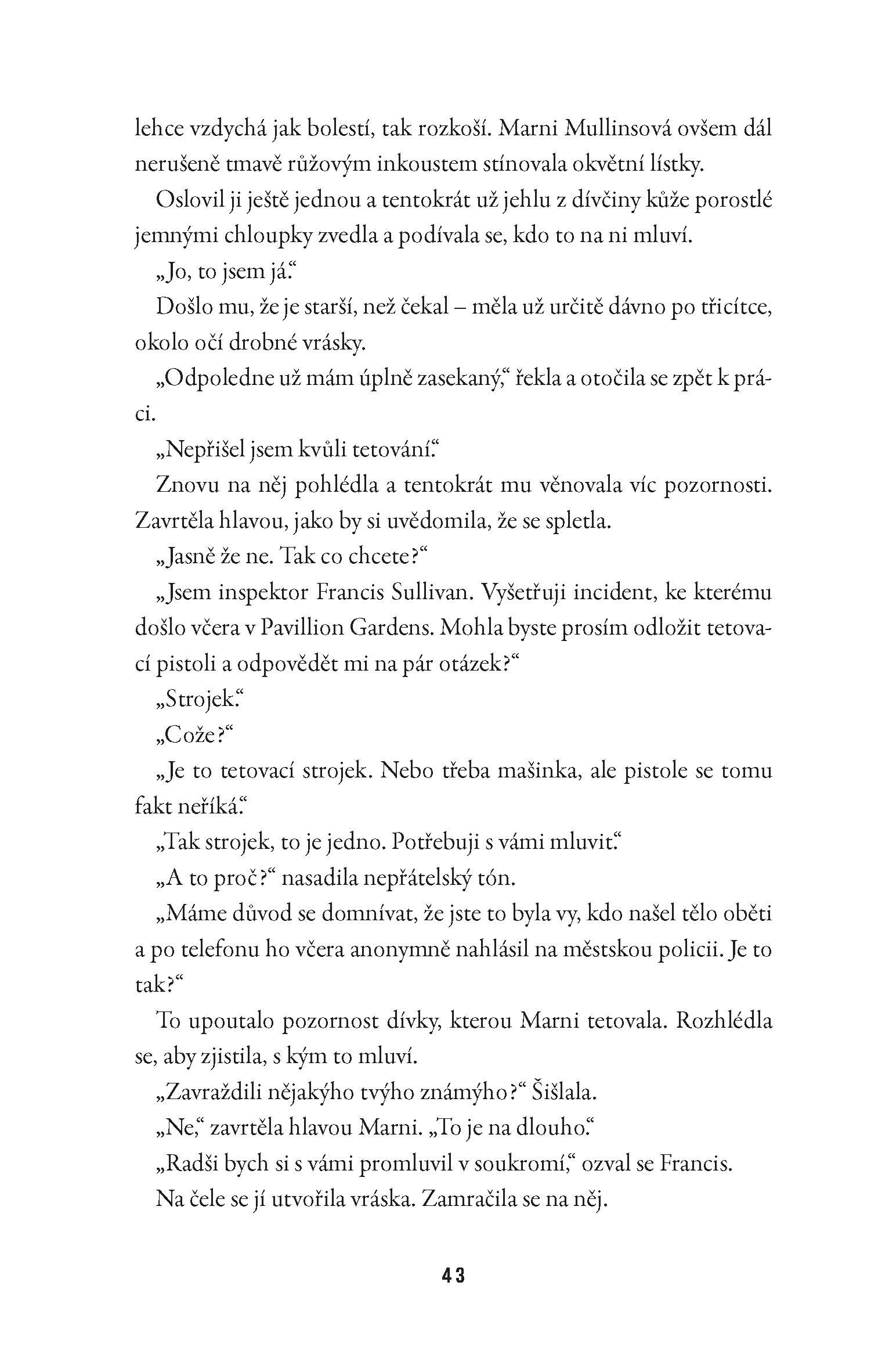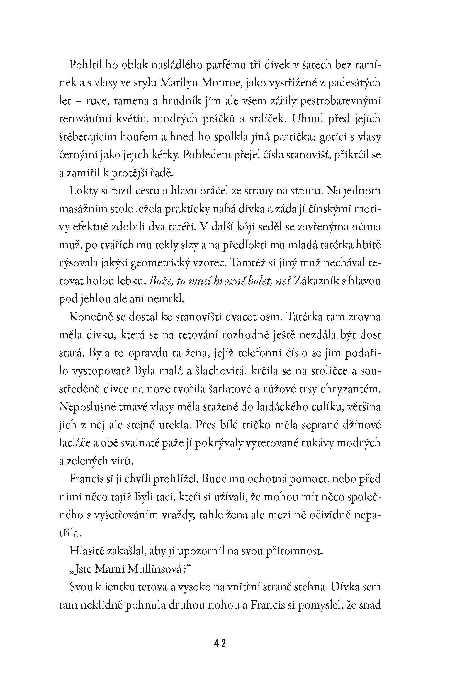 Když během tetovacího veletrhu v anglickém Brightonu objeví místní tatérka Marni Mullinsová podivně znetvořenou mrtvolu, ochromí celé město strach. Podle všeho tu řádí sériový vrah, který zaživa vyřezává umělecká díla z těl svých obětí. Marni skrývá tajemství a má pádné důvody, proč nedůvěřovat policii. Jak se proto rozhodne, když ji navštíví mladý, čerstvě povýšený inspektor? Pomůže mu vyšetřit jeho první vraždu, nebo se po stopách vraždící zrůdy vydá sama?