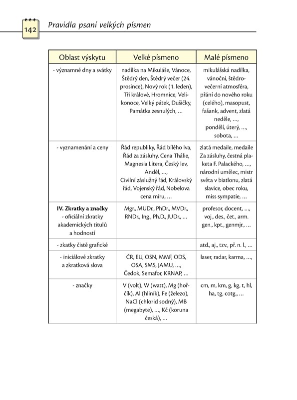 Poslední kapitolu tvoří souhrnné opakování, v němž si můžete vyzkoušet, jak jste problematiku psaní velkých písmen zvládli.