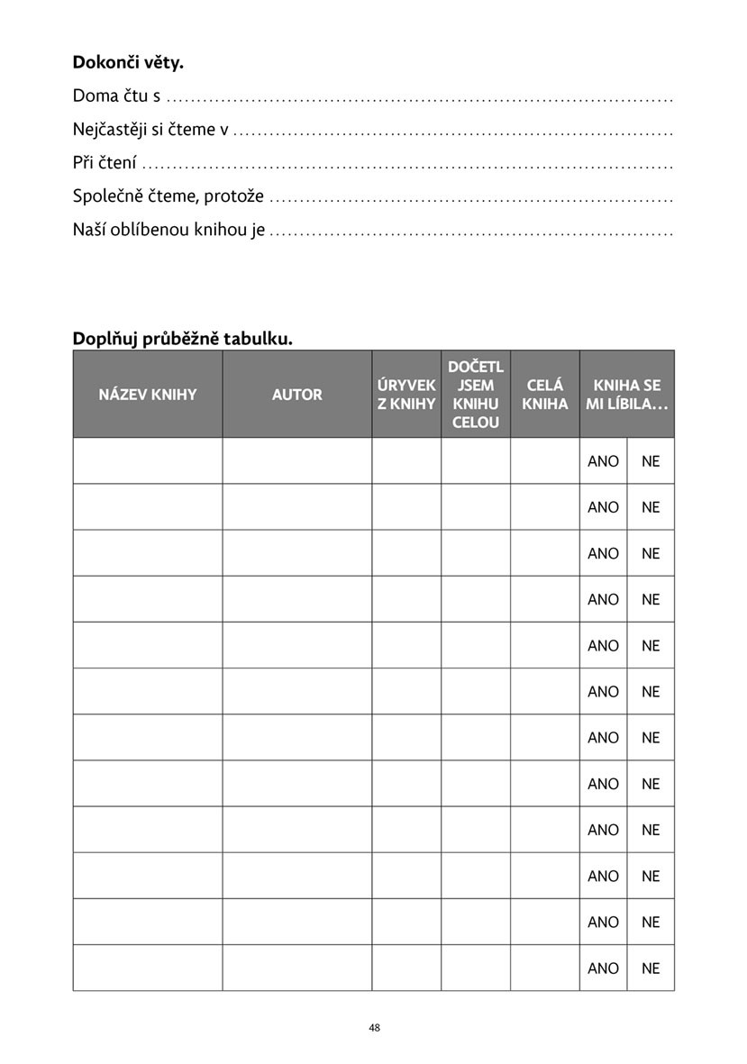Čtenářský deník pro žáky 3. – 5. ročníku ZŠ je koncipován jako doplňkový výukový materiál k rozvoji čtenářské gramotnosti, a nejen to. Vedle možnosti klasického zápisu o přečtených knihách přináší rovněž důležitou nadstavbu, jejímž prostřednictvím podporuje žáka ve vnímání sebe sama jako čtenáře: nabízí prostor pro sebehodnocení vlastních čtenářských zážitků a jejich sdílení formou vzájemných čtenářských konzultací, i místo k vlastním komentářům a postřehům učitele. V závěru nechybí tipy na další činnosti, kterými lze na deníkové záznamy navázat.