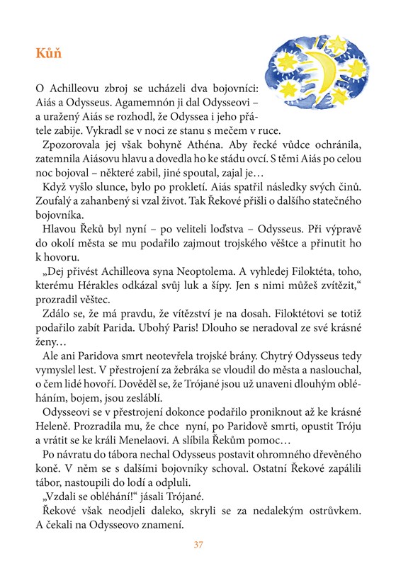 Hrdinové starých bájí, znáte je? Byli hrdí, byli stateční. Byli lstiví, závistiví... a stejní byli i jejich bohové. Ale to už víte, pokud jste četli Staré řecké báje a pověsti pro malé děti. V téhle knížce se o nich dozvíte ještě mnohem víc! Seznámíte se s největším hrdinou těchto příběhů, odvážným a chytrým Odysseem, a jeho přáteli i protivníky.
