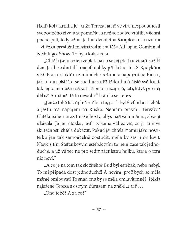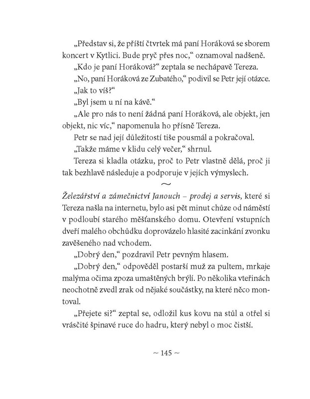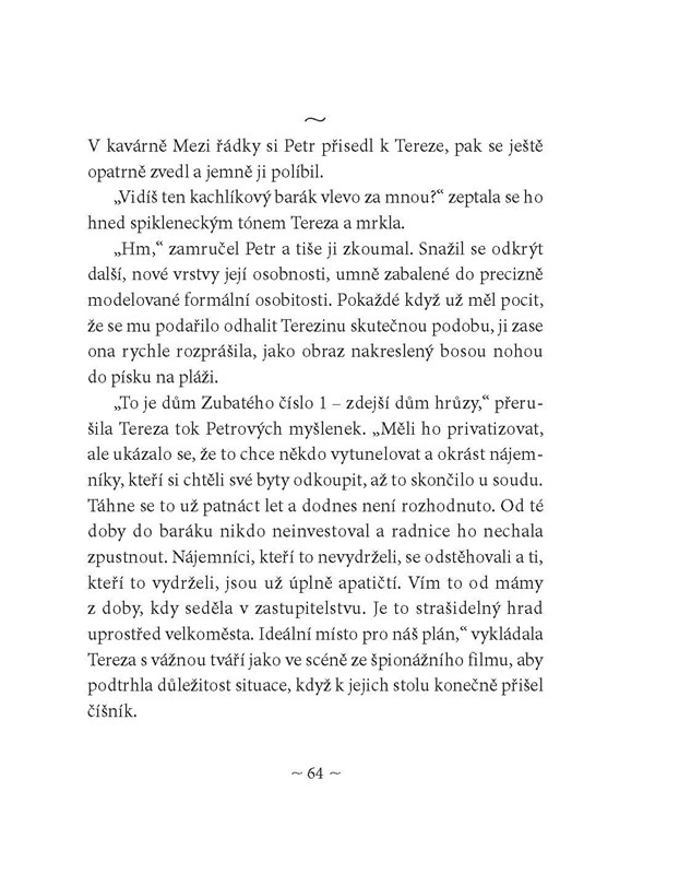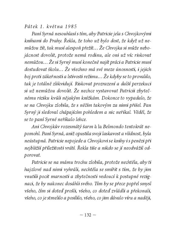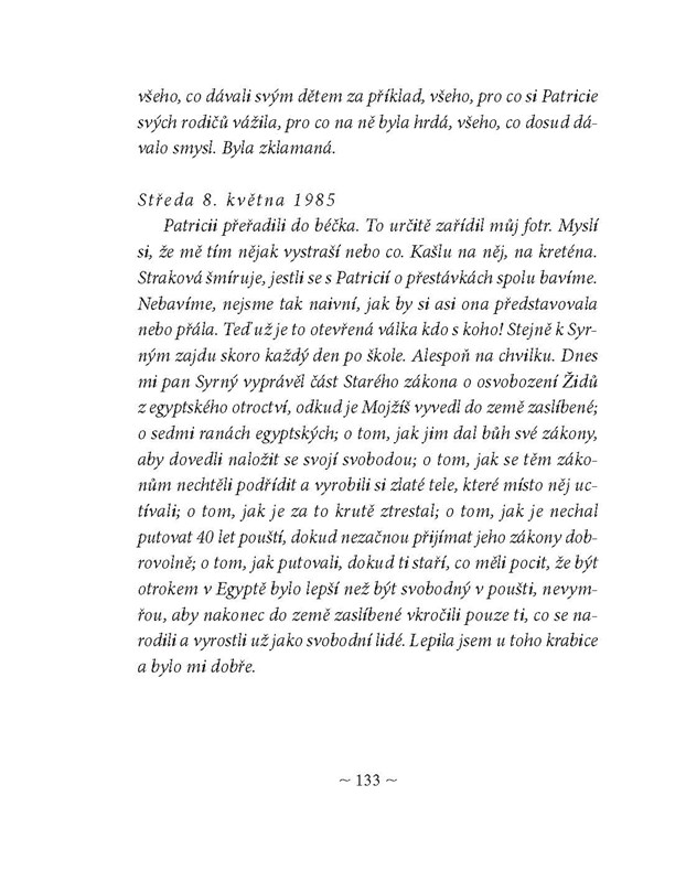 „Na klín si položila batoh a vytáhla knihu v tmavě hnědých deskách s nápisem „1985“ – matčin deník z toho roku, který vzala asi před měsícem z jejího trezoru na šperky. Byl mezi dalšími papíry hluboko na dně. Zapálila si cigaretu, uvelebila se na lavičce a začala číst.“