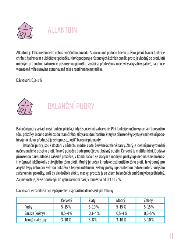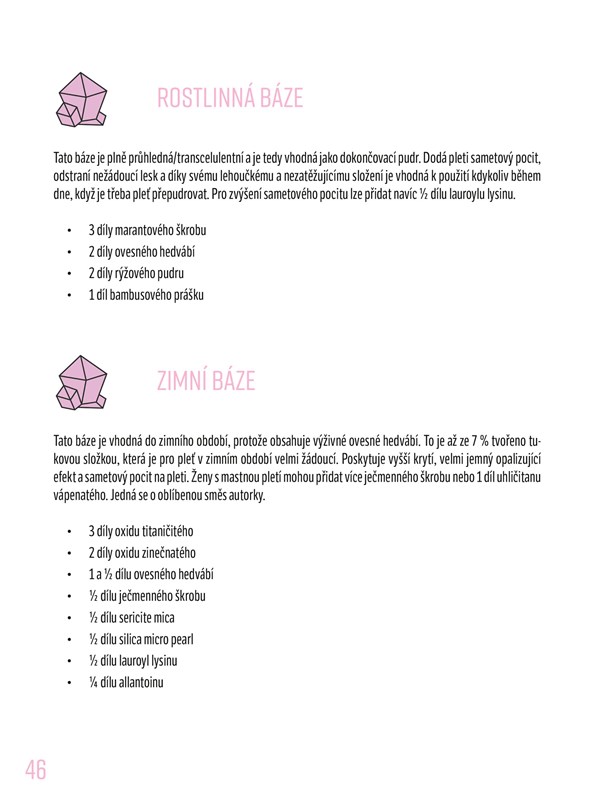 Namíchejte si vlastní pudry, oční stíny, make-up, ale i řasenky, tekuté linky nebo rtěnky. Řada surovin, které použijete k jejich přípravě, má pozoruhodné vlastnosti, jejichž vzájemnou kombinací získáte neuvěřitelně pestrou škálu vlastností, které přizpůsobíte přesně svému typu a barevnému tónu pleti. Vydejte se na cestu barevné alchymie a s pomocí receptů popsaných v této knize objevte svět domácí minerální kosmetiky.
