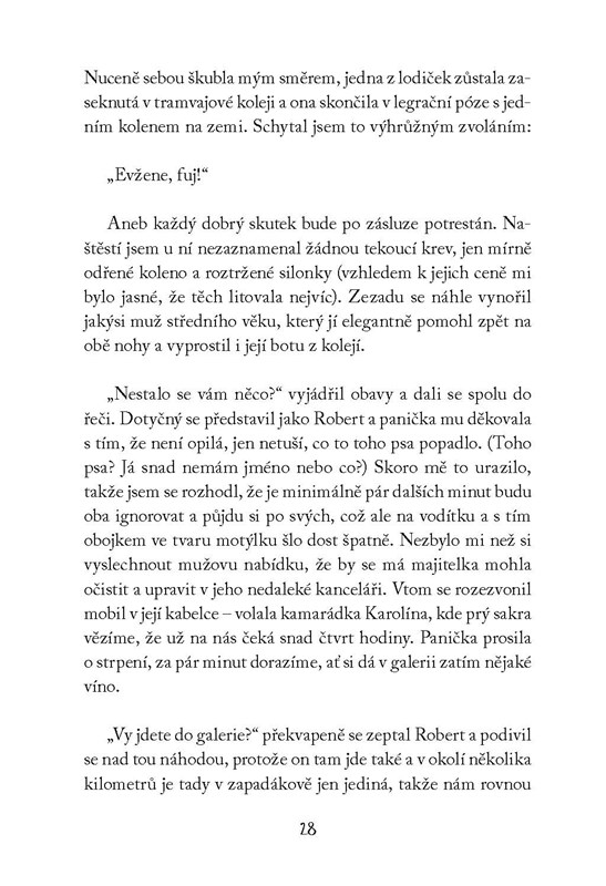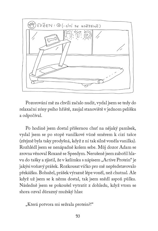 Buldoček Evžen má životě ve velkoměstě rád. Jako správný zástupce svého psího plemene zrovna moc netouží po náročných výšlapech do lesa nebo po životě na statku, kde by se o životní prostor musel dělit se slepicemi a kozami. Ve městě může i jako pes prožít celý život v kavárnách a barech. Stačí se vždy bezelstně podívat na dámu u vedlejšího stolu, a už mu u čenichu přistane kousek koláče. S radostí doprovází svou paničku na ranní kávu, odpolední čaj nebo večerní drink.