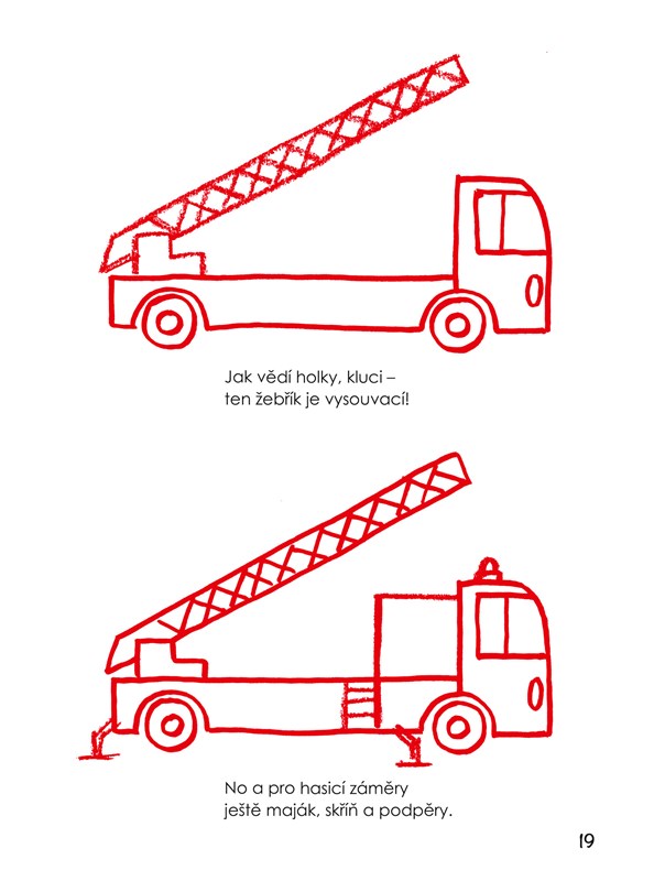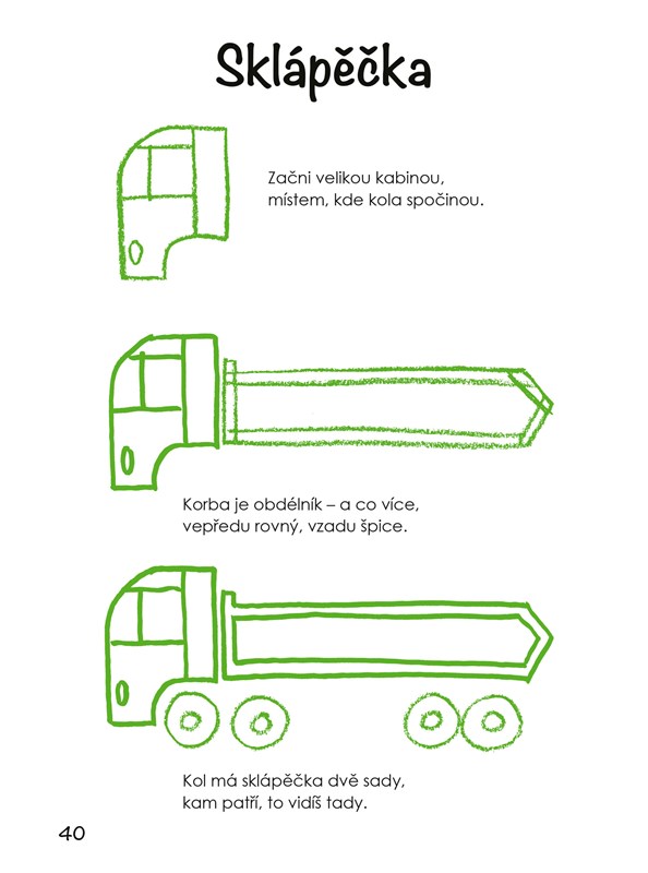 Praktické návody, jak jednoduše krok za krokem nakreslit nejrůznější dopravní prostředky, jsou určeny už těm nejmenším dětem. S jejich pomocí dokážou hravě zobrazit všelijaká auta, stavební vozidla, letadla, vlaky i lodě, které mají tolik rády. Pocit uspokojení z pěkného výsledku jim přinese nejen radost, ale také motivaci se kreslení či malování dále věnovat a rozvíjet své vlohy i dovednosti.