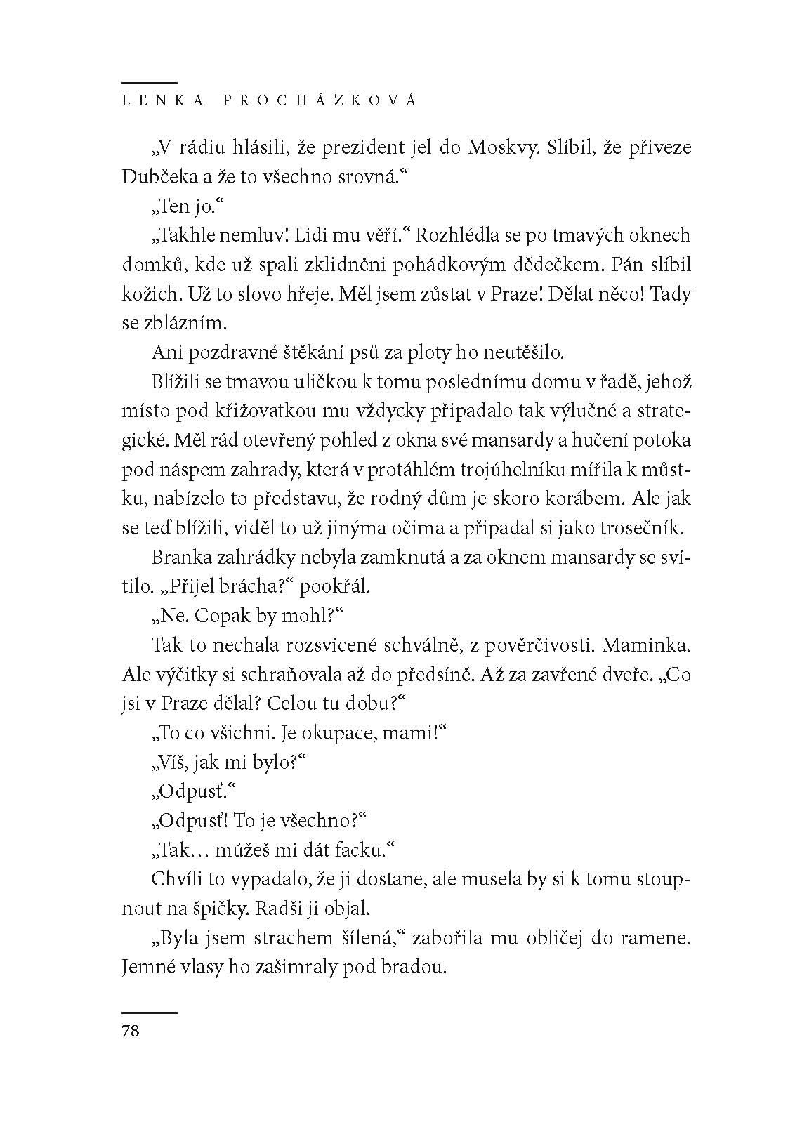 Lenka Procházková se pokouší ze skromných indicií vytvořit obraz charakteru a osobnosti člověka, pro něhož invaze a pozdější reakce veřejnosti i vlády na ruskou okupaci byly podnětem k promyšlenému burcujícímu činu, který otřásl celou společností pomalu upadající do normalizačních podmínek. vytvořila postavu citlivého, realisticky uvažujícího a politicky vyzrálého mladého muže, který věřil, že svým sebezničujícím činem dává společnosti poslední šanci na dosažení politické změny. Palachův příběh autorka beletristicky zpracovala na základě nedokončeného dokumentu Jana Lederera z roku 1988 vydaného v samizdatu, a s ohledem na generace, pro které znalost tehdejších okolnosti není samozřejmostí, obohatila příběh chronologií okupace a informacemi z odtajněných archivních dokumentů.