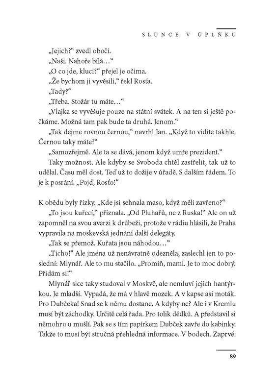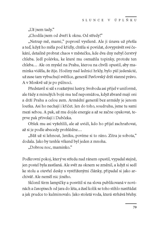 Román o osobnosti studenta Jana Palacha, který se stal symbolem českého odporu proti invazi vojsk Varšavské smlouvy v srpnu 1968, z historicko-politického pohledu detailně líčí události i atmosféru ve společnosti až do ledna 1969.