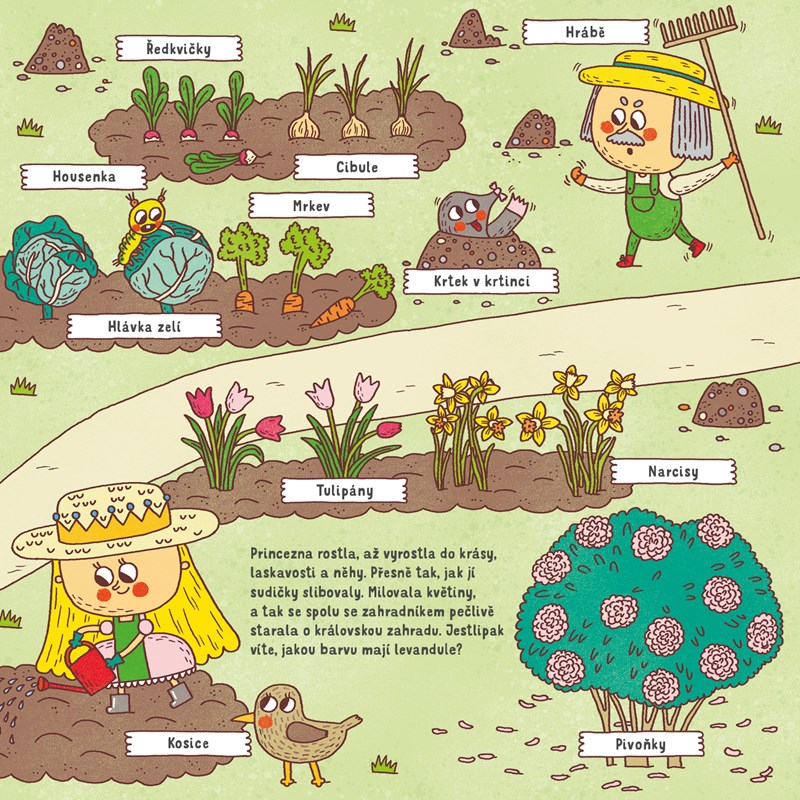 Naučte se s ospalou princeznou všemu, co vám může vyrůst na zahradě.
