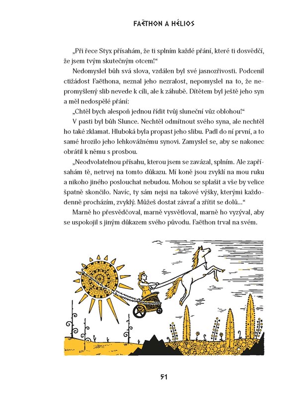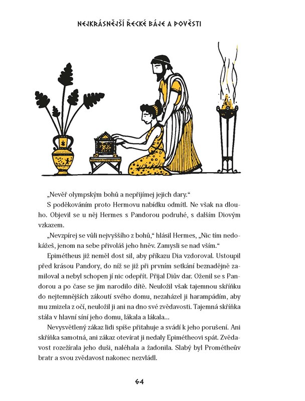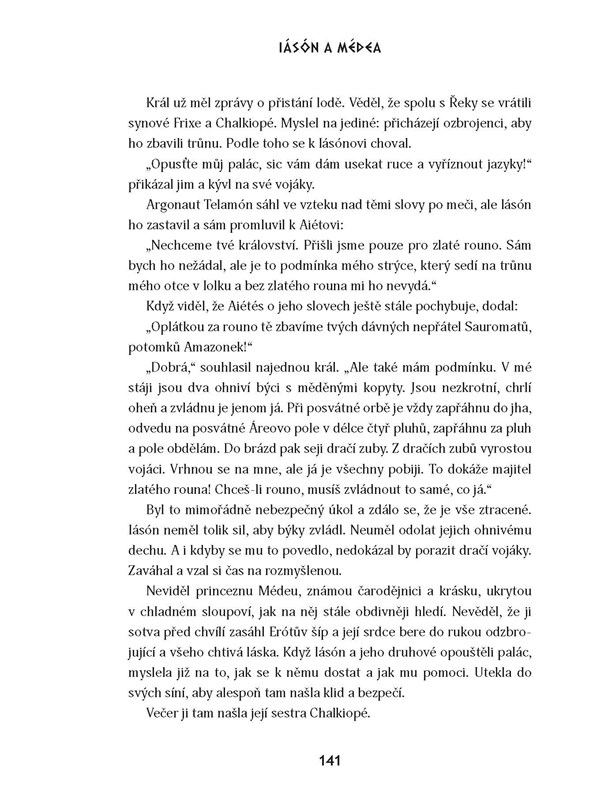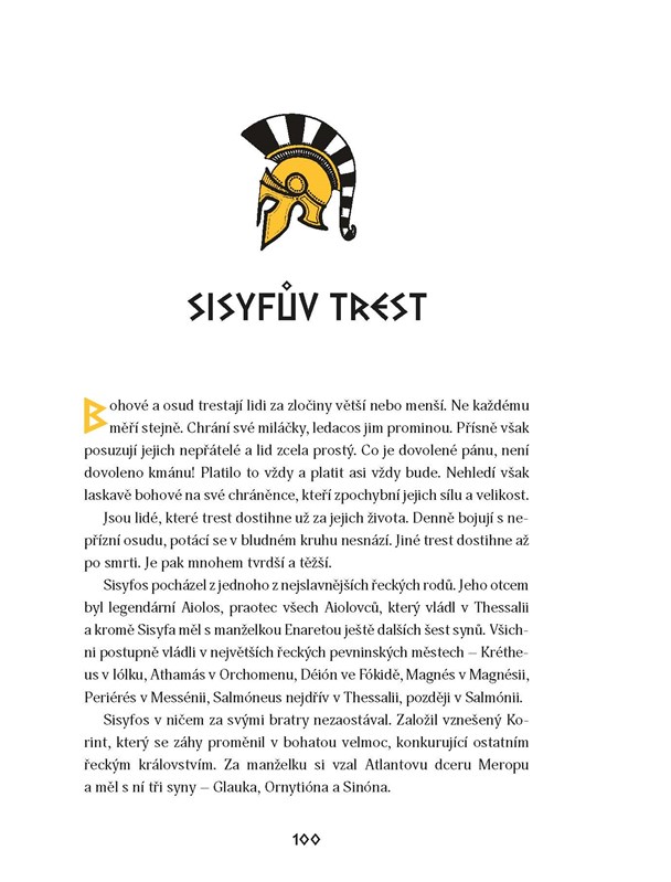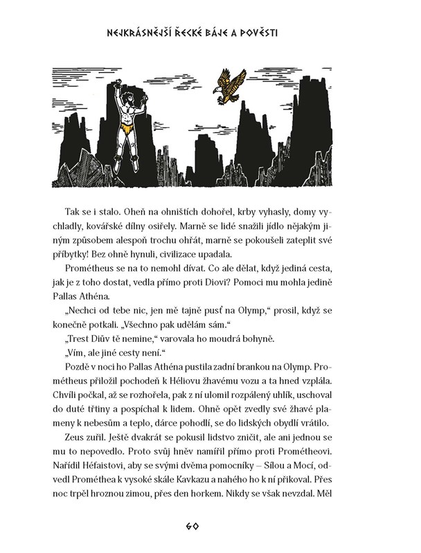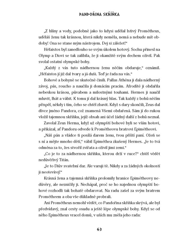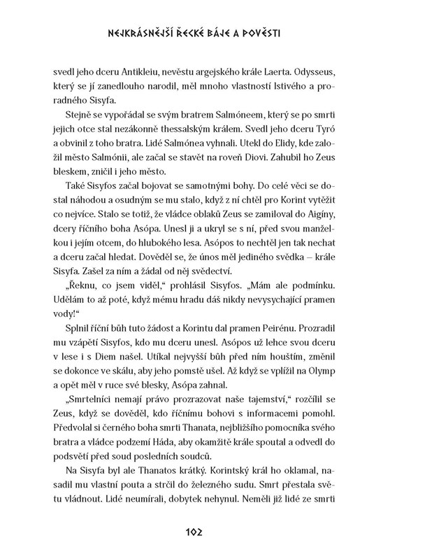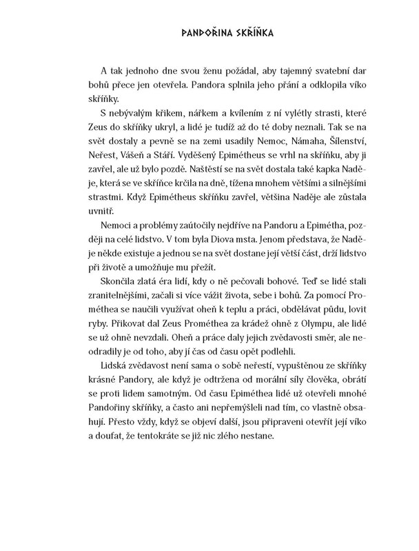 Vstupte do světa olympských bohů, jimž vládne záletný Zeus a jeho žárlivá manželka Héra, sledujte životní pouť nejslavnějšího řeckého hrdiny Hérakla, spolu s Théseem se vydejte do Mínotaurova labyrintu a s Perseem pro hlavu Medusy. Vypravte se s Argonauty pro zlaté rouno a s Agamemnónem a Achilleem dobývat Tróju. Provázejte Odyssea při jeho dvacet let trvajícím bloudění i nešťastného Oidipa snažícího se zabránit naplnění věštby…