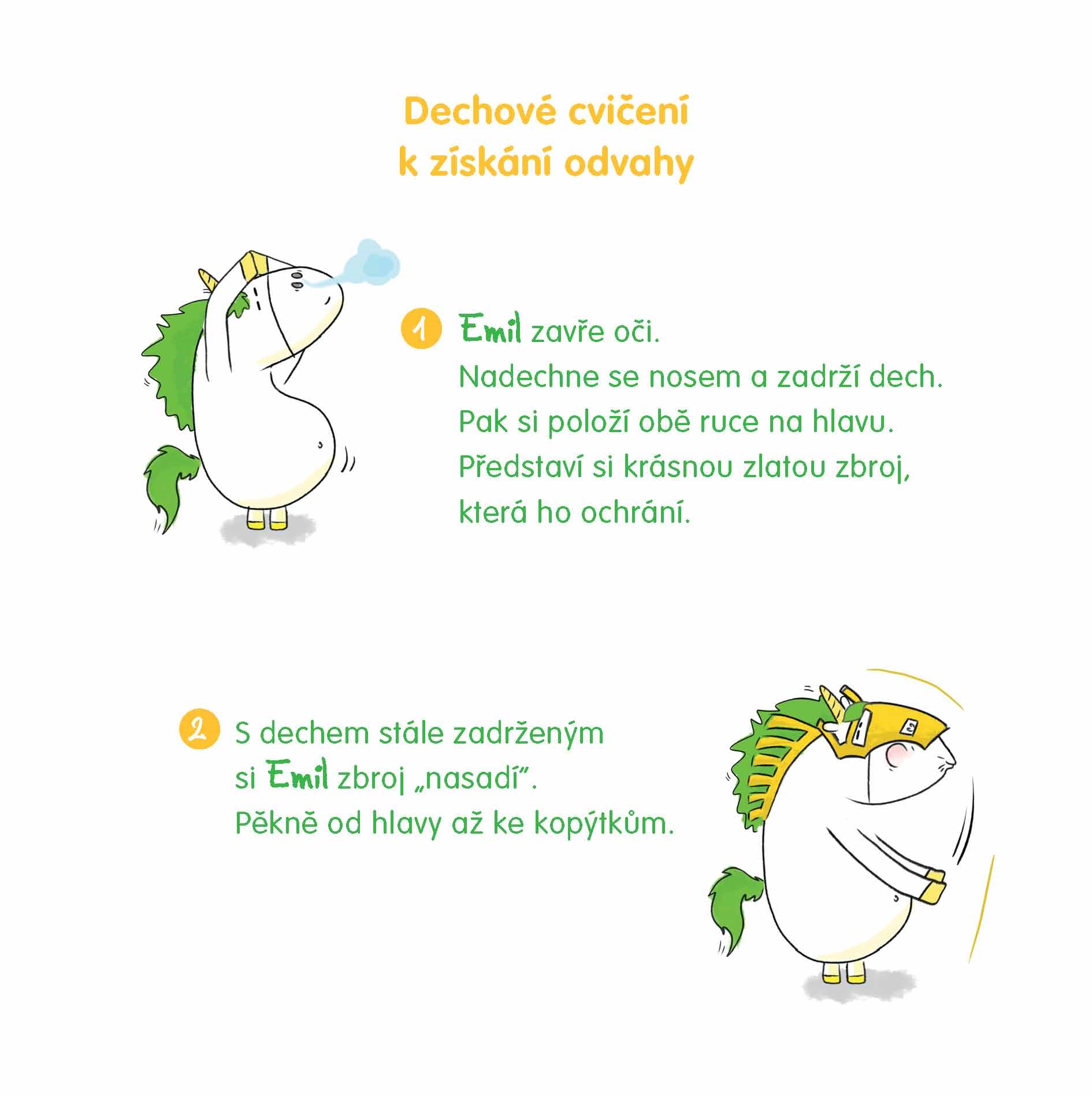 Emil je malý jednorožec jako každý jiný, tedy skoro… Jeho duhová hříva mění barvy podle toho, jak se zrovna cítí. Tentokrát se Emil bojí. Jestlipak víš, co mu pomůže zahnat strach? Otevři tuhle knížku a dozvíš se to!