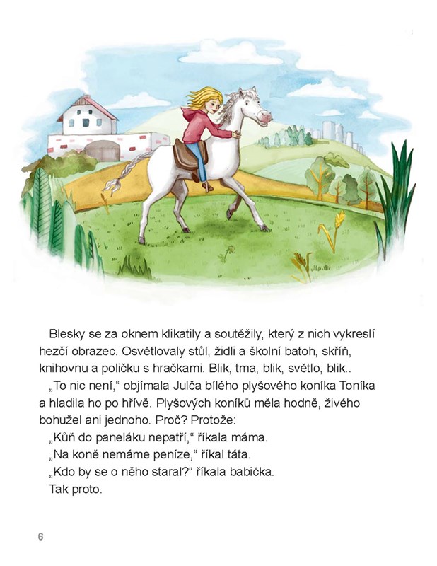 Možná tomu úplně nevěříte, ale je to tak: Přání se plní, doopravdy! A to bohužel i ta, která jsme si zas až tolik nepromysleli a která, když se stanou skutečností, nás dokážou pořádně zaskočit. Jako třeba Julii. Dlouho snila o tom, že bude mít opravdového koně. Poté co se ale jedno krásné ráno objevil u ní v pokojíčku, byla z toho pořádně paf. Co bude dělat s koněm v paneláku? To bude pěkné pohroma. Nebo spíš legrace?
