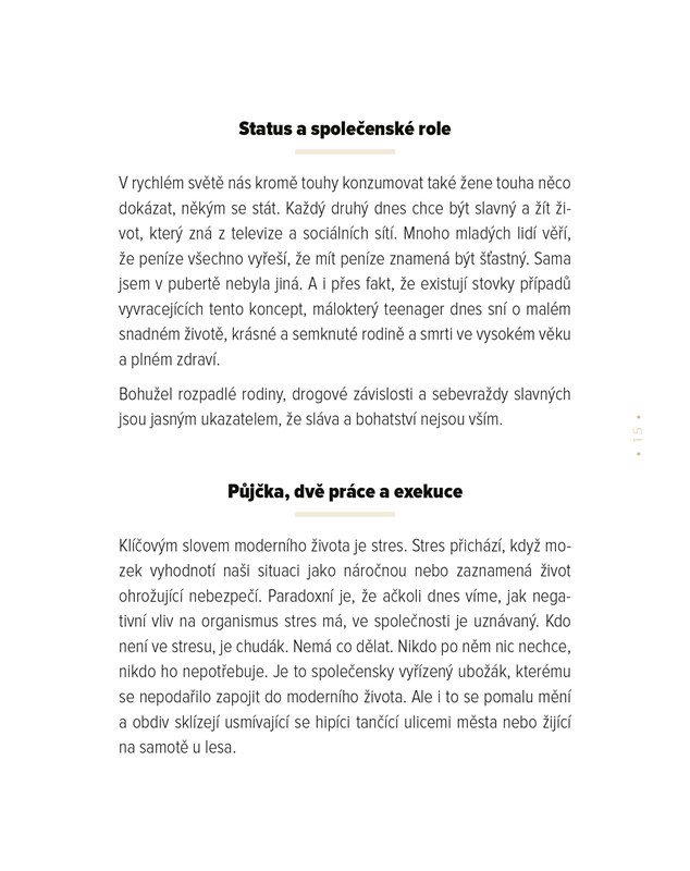 Svět se zrychluje. Máme všeho čím dál víc a přeci jen nám pořád něco chybí. Lidstvo sužují stále nové civilizační nemoci a navzdory nevídanému materiálnímu blahobytu nám pocit štěstí proplouvá mezi prsty. Co s tím? Můžeme zpomalit. Pozvěme pomalost do svého života – šatníku, kuchyně, ložnice, nakupování, vyhazování i cestování. Ve SLOU najdeme, jak nechat pomalost prostoupit svou mysl a celé tělo.