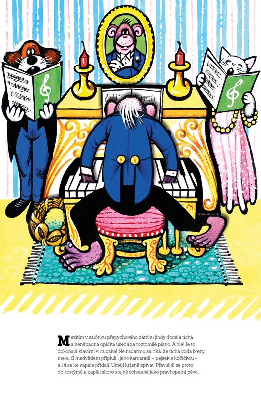 Jednoho dne se zvířátka rozhodnou, že si založí kapelu. Žabka v ní bude hrát na basu, pejsek na píšťalu, myška bude poklepávat nožkou do rytmu a ježek bude držet noty. Muzika si podmaní celou zvířecí říši! Přečtěte si další, tentokrát poněkud netradiční trojrozměrnou knihu slavného výtvarníka Vojtěcha Kubašty, jehož práci dodnes obdivuje celý svět.