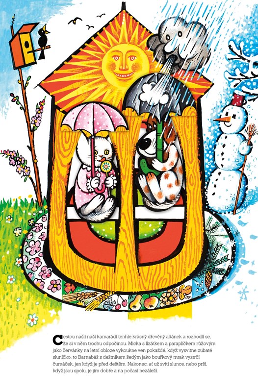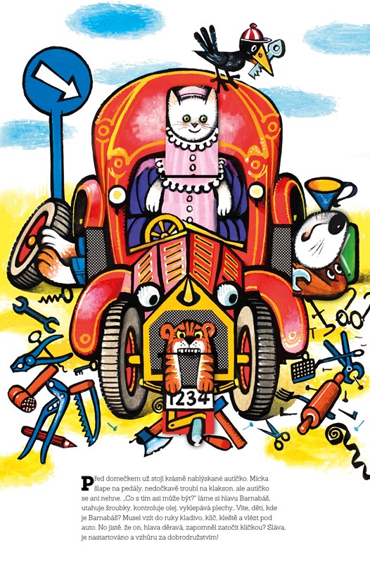 Hmm, co to tady voní? No jistě, to kočička Micka zase vyváří Barnabášovi dobroty! Vůně z jejich domečku se line až sem… Když je jim dlouhá chvíle, zahrají si divadlo a zapomenout nesmějí ani na školu. Po hodině matiky je konečně čas na zábavu. Hurá, jede se na výlet! Před domečkem stojí krásné nablýskané autíčko. Kampak mají asi namířeno? Přečtěte si poněkud netradiční trojrozměrnou knihu českého výtvarníka Vojtěcha Kubašty, jehož práci obdivuje celý svět.