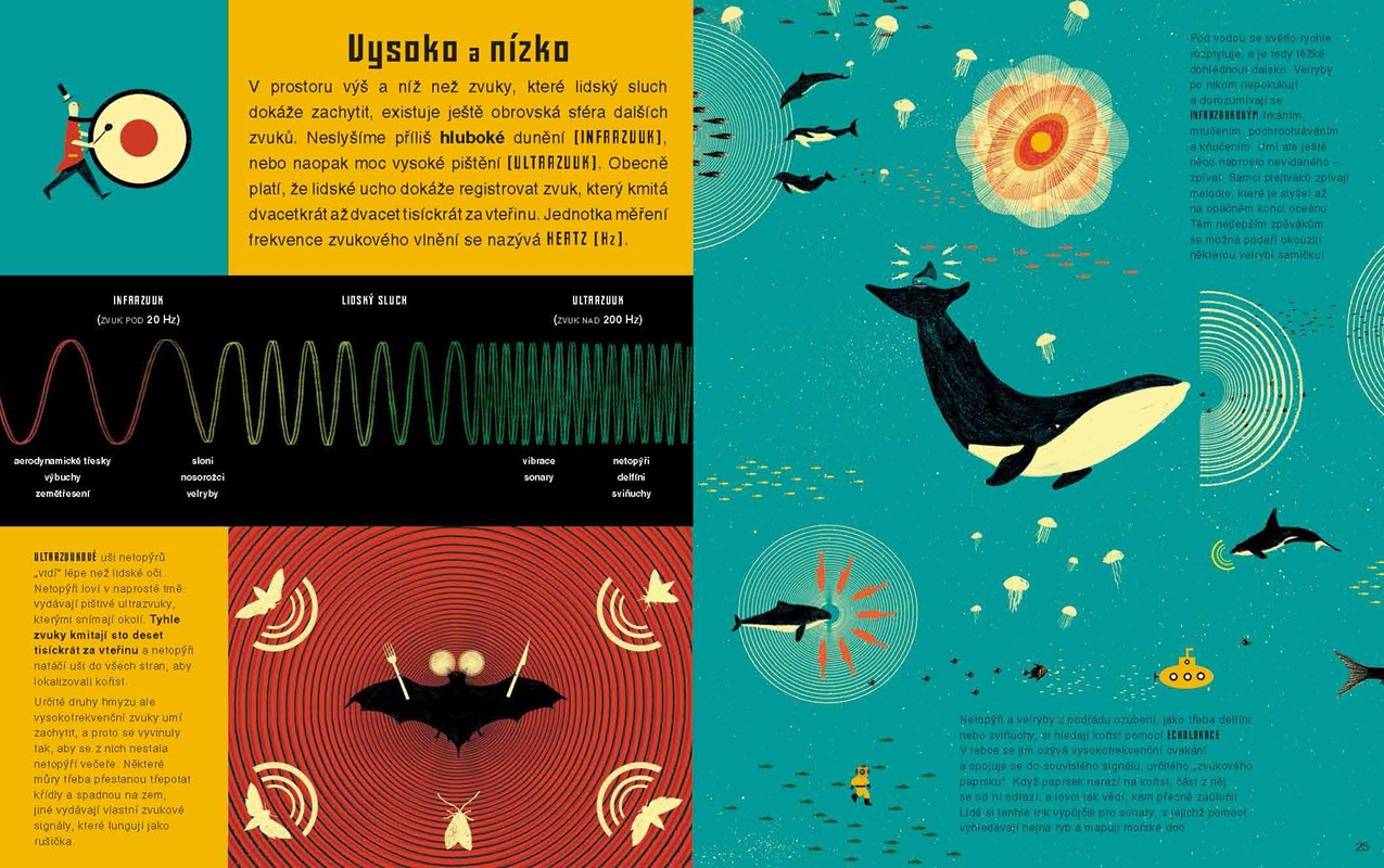Ilustrovaný průlet fyzikou, zvukem, světlem a vesmírem.