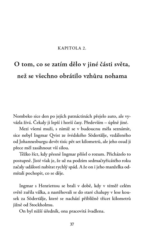 Nombeko začala pracovat v pěti letech jako vynašečka latrín na předměstí Johannesburgu, v deseti letech osiřela. Nic nenasvědčovalo tomu, že by neměla prožít svůj život v jedné z chatrčí největší chudinské čtvrti světa a pak tu předčasně umřít, nikým nepostrádaná. To by ale nebyla Nombeko – analfabetka, která uměla počítat. Osud i její talent ji zavedou až do mezinárodní politiky, na druhou stranu zeměkoule, ke dvěma identickým a zároveň velmi odlišným bratrům. Během jejího dobrodružného putování se jí podaří zamotat hlavu agentům nejobávanější tajné služby nebo být unesená ve špinavém náklaďáku na převoz brambor. A tím to zdaleka nekončí…