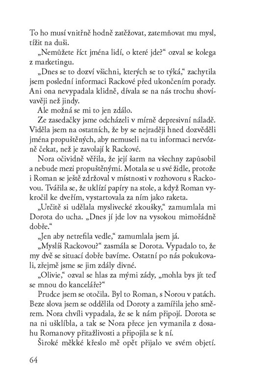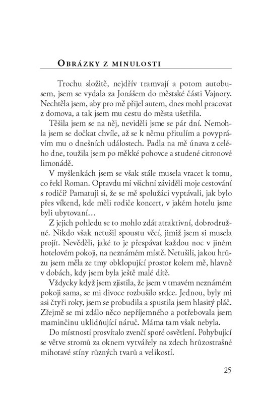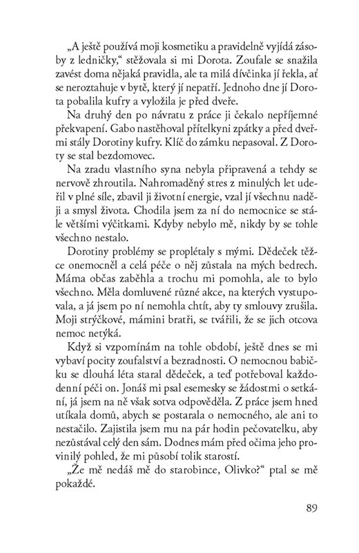 Hotely, koncertní sály, ustavičné cestování. Tak vypadalo dětství Olivie, jejíž rodiče měli kapelu. Kvůli jejich kočovnému životu neměla Olivie žádné kamarádky ani pocit sounáležitosti. Touha mít kolem sebe blízké lidi ji přivedla do velké rodiny Jonáše. Olivie se snaží zapomenout na traumata z dětství a těší se na společný život s Jonášem. Do jejích plánů nečekaně zasáhne příchod nového šéfa v práci – bývalého spolužáka, kterému kdysi zlomila srdce. Když se šéf rozhodne využít příležitosti, aby se jí pomstil, Olivie nachází oporu u kamarádky Doroty, která se sama snaží vyrovnat se životními zklamáními. Nadějí se pro Dorotu stává sympatický osamělý muž. Když ale kamarádky objeví v jeho sklepě panenku a dětské oblečení, naděje se mění v podezření.