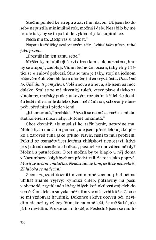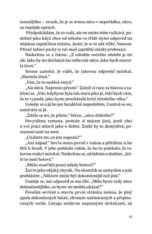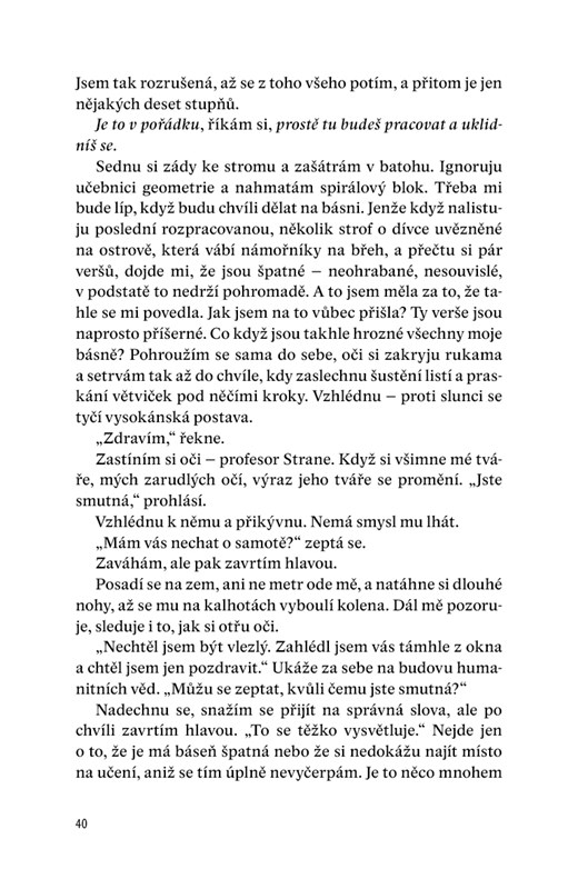 Strhující debut výjimečně talentované autorky popisující vztah mezi předčasně vyspělou, přesto neuvěřitelně naivní dospívající dívkou a jejím uhrančivým, avšak zrůdně manipulativním profesorem.