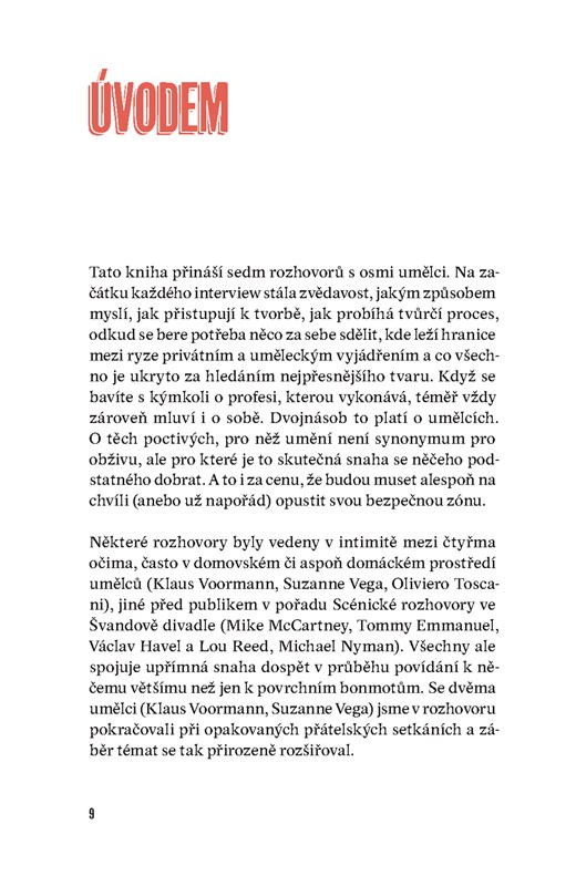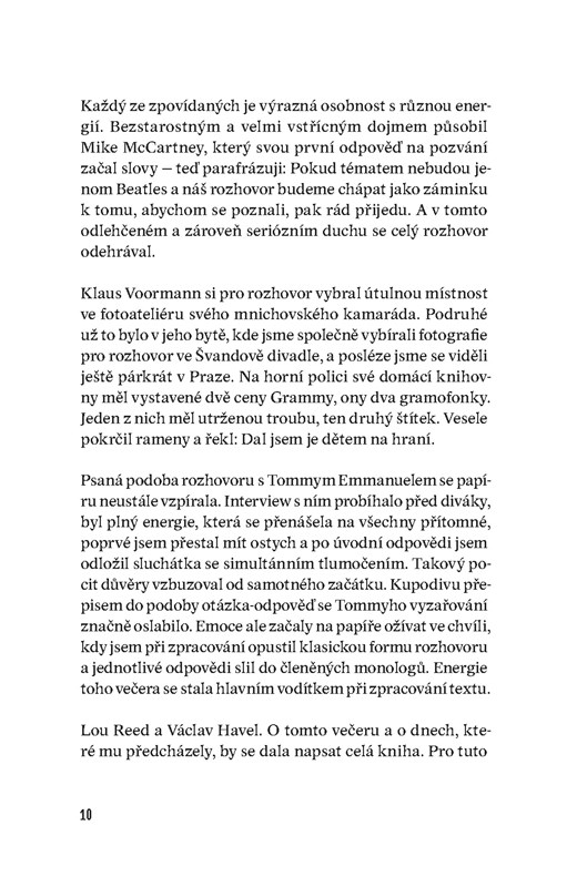 Hudebníci, spisovatelé, fotografové, skladatel – kniha inspirativních rozhovorů napříč uměním. Jako určitý spojník všech zpovídaných, mezi nimiž je např. Mike McCartney, Václav Havel a Lou Reed, Suzanne Vega nebo Michael Nyman, fungují 60. léta 20. st. – doba rokenrolu, Beatles, volnosti a svobody v umění.