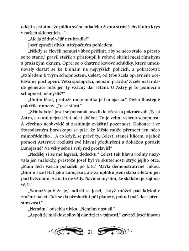 Setkání mladé Astry Celestiny, Lunojase Alexe a zdánlivě obyčejného beztvářného Tima bylo náhodné, zato osudové. Co spojuje jejich původně tak vzdálené životy? Jakou bariéru bude muset Tim překonat? Co bylo předpovězeno Alexovi ve starodávné věštbě a proč se Celestině tak často zdá zvláštní sen o dvanácti princeznách?