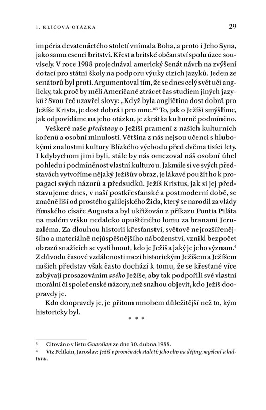 Kdo je Ježíš? Tato prostá, nadčasová otázka zní napříč staletími. Také odpověď na ni je prostá, leč nikoli snadná. Pokud se rozhodneme této Ježíšově otázce naslouchat a odpovědět na ni, změní náš způsob života, myšlení a cítění. Vede nás totiž k poznání sebe sama, které nás promění. Na takovou otázku můžeme odpovědět jedině tenkrát, když se my sami staneme dostatečně prostými díky dlouhému a hlubokému naslouchání. Ježíš hraje nepostradatelnou úlohu na cestě k jakékoli autentické spiritualitě. Přestože mnoho lidí má nějaký problém s církví – včetně většiny věřících – osoba Ježíše je jedním ze stabilních majáků vedoucích lidstvo ze zmatku sobectví, zoufalství a násilí k vyšším cílům, jež si před sebe neustále klade, totiž k laskavosti a klidu ducha.