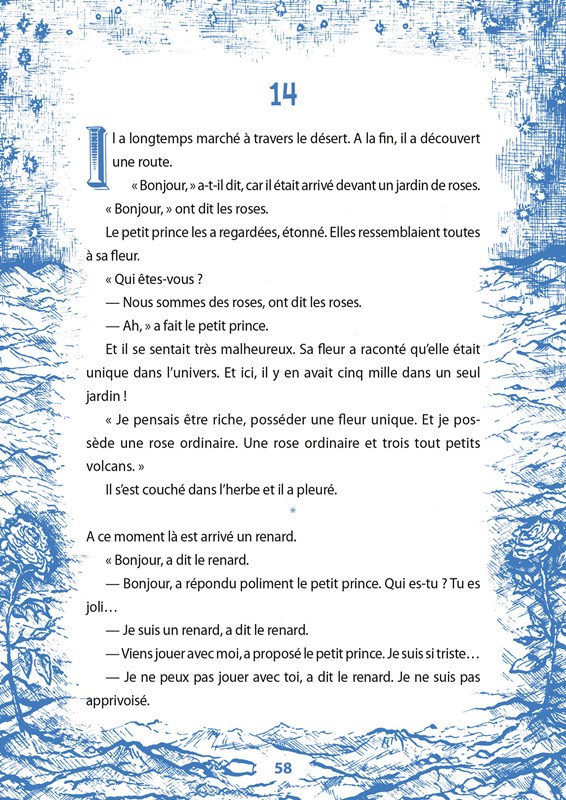 Setkání vnímavého muže s neobyčejným malým chlapcem vede čtenáře k zamyšlení nad otázkami dobra a zla a podstaty přátelství, pobízí ho k hledání opravdové krásy a odpovědnosti za ty, které máme rádi. V publikaci najdete upravenou verzi pohádky, která je převyprávěna zjednodušenou francouzštinou, nemusíte se proto obávat, že byste textu neporozuměli. Kniha je výbornou volbou pro začínajícího čtenáře, ať dítě či dospělého. Na každé stránce naleznete český zrcadlový překlad, který vám umožní obratem zkontrolovat, zda cizojazyčnému textu rozumíte správně.