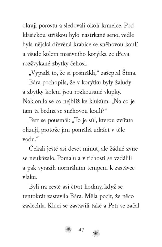 Bára má dvě velké lásky – atletiku a zvířata. Když cestou z tréninku zaslechne, jak se parta výrostků domlouvá, že prožene netopýry zimující ve štolách za městem, rozhodne se, že jim plán překazí. Na zpáteční cestě narazí spolu s kamarády, kteří jí pomohli, na černou skládku. U hromady haraburdí zahlédnou červený stín, a když přijdou blíž, najdou zraněné liščí mládě. Asi bylo zvědavé nebo hledalo něco k snědku a zamotalo se do rezavého drátu.
