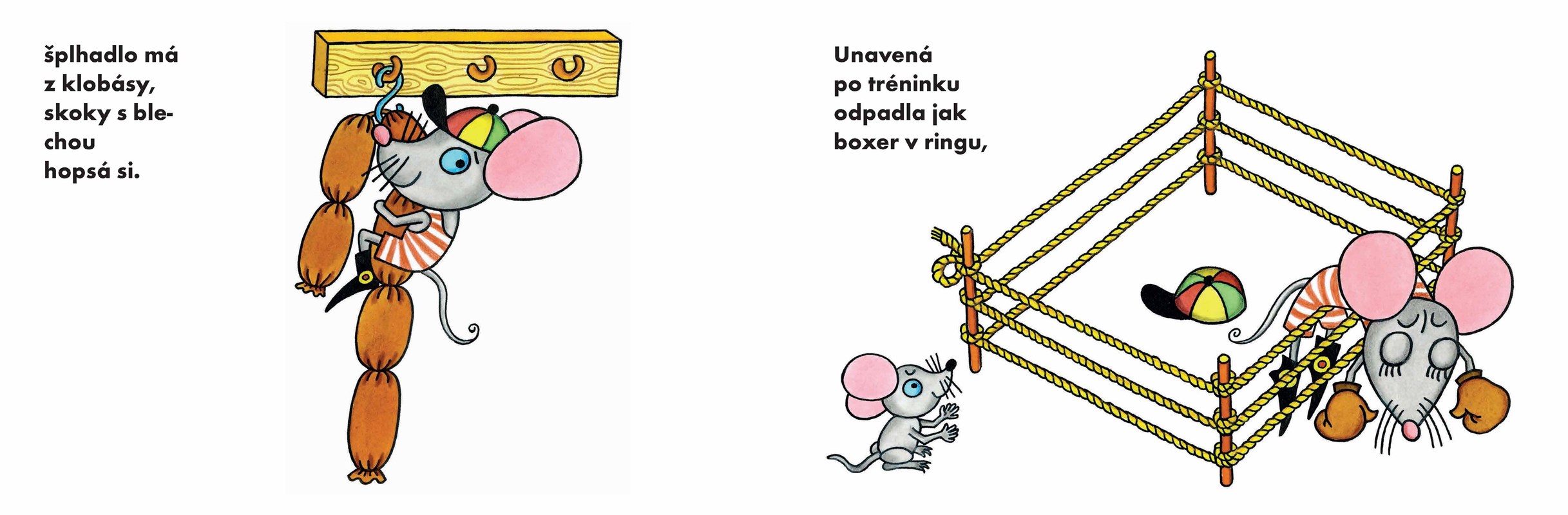 Půvabné a nadčasové leporelo Heleny Zmatlíkové znovu vychází po dlouhých padesáti letech! Veršovaný příběh myšky, která sportuje s takovým zápalem, až se jí stane osudným, ze slovenského originálu Miroslava Nemana přebásnil osvědčený Josef Brukner.