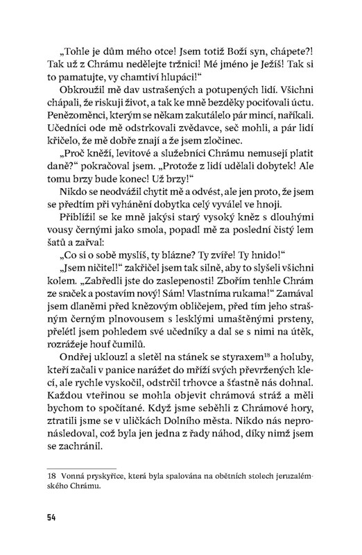 Ježíš Kristus svým učením ovlivnil celý svět, ale přesto po sobě nezanechal žádný vlastní text. Román Olega Zoberna se snaží tuto mezeru originálním způsobem vyplnit. Jeho Ježíš je poněkud cynickým mudrcem, kritickým mozkem, který vidí nedostatky ve svém okolí i na sobě, zdatným manipulátorem a hlavně člověkem, hledajícím v tomto chaotickém světě smysl. Celý život pátrá po vyšší duchovní pravdě a často končí zklamán a bez naděje. Nečekaně aktuální románová výpověď přináší vhled do složitého světa antického myšlení a s chladnou promyšleností popisuje, jak snadno si lidé vytvářejí idoly a kulty.
