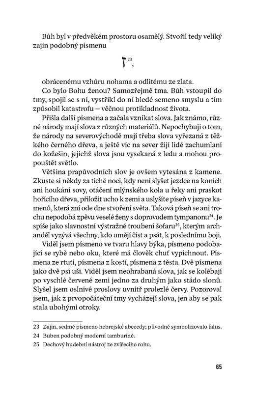 Zobern postavu Ježíše desakralizuje do nejvyšší možné míry: Kristus tak otevřeně promlouvá třeba o svém chtíči či sexuálních stycích a události známé z biblického kánonu, například Lazarovo zmrtvýchvstání, nabývají leckdy až parodického vyznění. Knize přitom nechybí hlubší, filozofický rozměr, Zobern mimo jiné často akcentuje motiv slova jako prostředku dorozumění, ale také jako nástroje, jak nad někým získat moc.