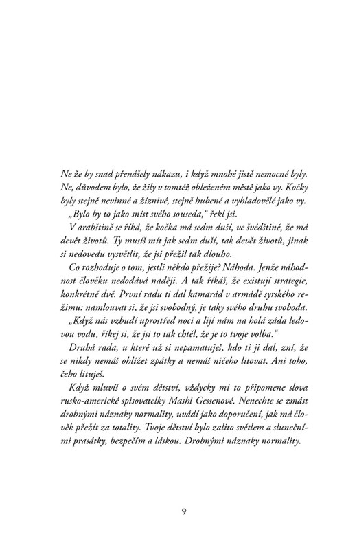 Kniha je inspirována příběhy, jaké přinesly Hosseiniho Lovci draků, ale také svědecká literatura, jakou psal maďarský nositel Nobelovy ceny Imre Kertész, např. v románu Člověk bez osudu či Kádiš za nenarozené dítě.