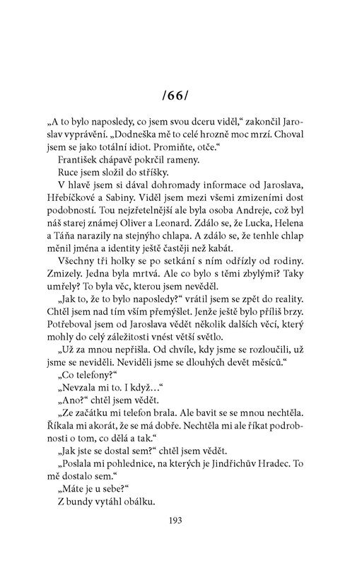 Matěj Mlynář se po smrti dcery a zjištění pravdy o svém otci uzavřel do sebe. Jeho život stagnuje a on nejeví zájem vůbec o nic. Pak ho ale jednoho dne osloví neznámá žena s prosbou o pomoc. Najme si ho, aby jí pomohl najít dceru a Mlynář se tak opět vrací do hry. Zatímco sleduje stopu, ulicemi města se plíží zlo, s nímž on ani Pavla Králová nikdy neměli tu čest. Cesta je oba pomalu stahuje hluboko do podzemí, do děsuplné temnoty plné bolesti, kde jeden chybný krok znamená záhubu. Vědí jen jedno: spolehnout se můžou zase jen sami na sebe a vzájemné parťáctví, které tentokrát čeká jedna z nejtěžších zkoušek.