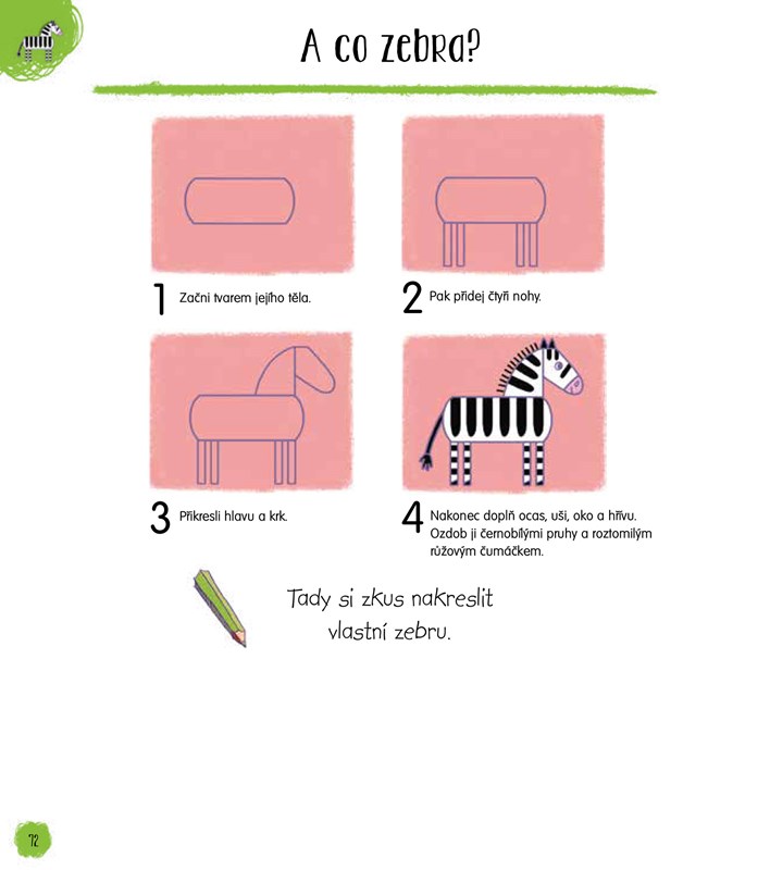 Skvělá kniha pro všechny malé malíře. Stačí se řídit jednoduchým návodem a můžeš si krásně nakreslit téměř 60 zvířátek z džungle, moře, řeky nebo ze safari, od kolibříka až po tygra. V knížce také najdeš spoustu volného místa na vlastní malování a mnoho veselých obrázků k dokreslení!