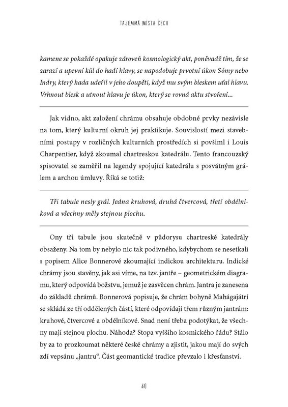 Dva přátelé, spisovatel a fotograf, se vydali na okružní jízdu po těch vůbec nejtajemnějších místech celých Čech. Na své cestě potkali menhiry, zázračné prameny, strašidelné zámky, poklady, přírodní kuriozity, místa dávných kultů i obětiště. Nechali si vyprávět legendy o upírech, démonech i světcích. Snažili se odhalit tajemství posvátné geometrie i podzemí.