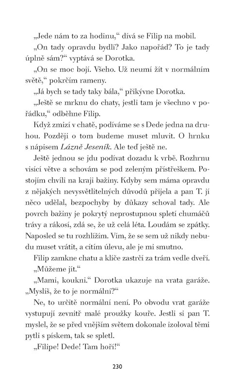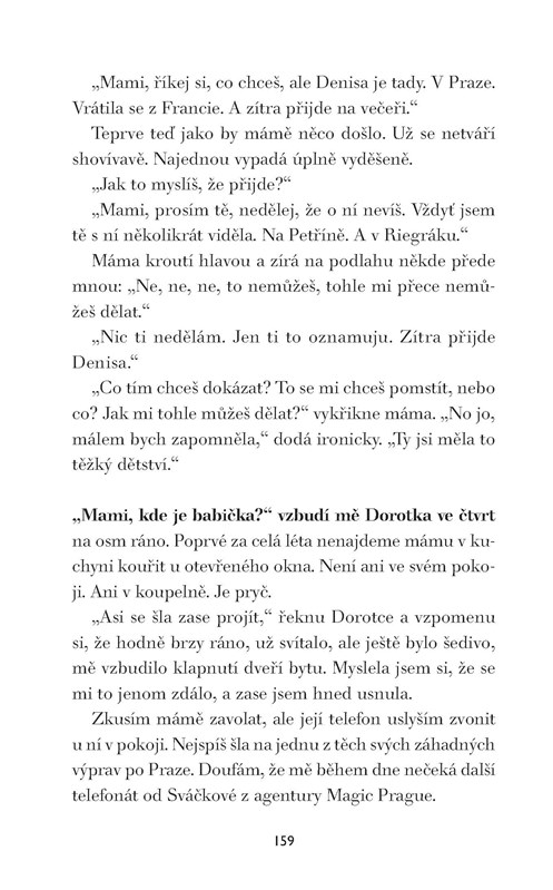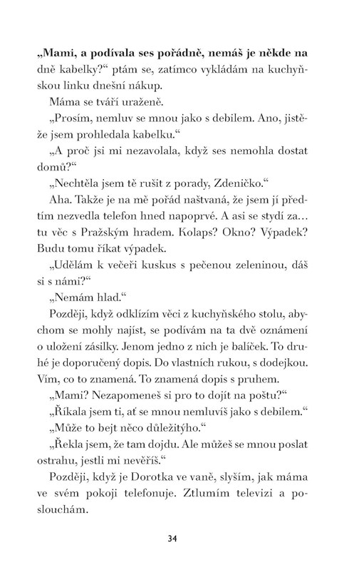 Začátkem května 1986, když se nad naši zem pomalu sunul radioaktivní mrak z Černobylu, bylo Zdeně šest let. Skoro nic si z těch dnů nepamatuje. Jenže právě tenkrát se stalo cosi, co změnilo osud celé její rodiny. Aby se vypořádala se svými problémy v dospělosti, musí se temným vzpomínkám z dětství postavit čelem. Proč její matka nechce mluvit o minulosti? A kdo je tajemná imaginární přítelkyně, kterou Zdena oslovuje Dede? Hledání odpovědí ji zavede do pražských parků, do maringotky v sudetském pohraničí, do temné garáže, ale i daleko na pobřeží v Bretani.