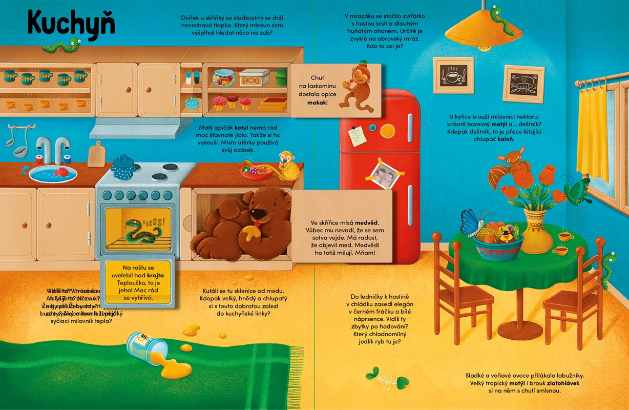 Stačí jedna malá díra v plotě... a začíná velké zábavné dobrodružství. Zvědavá zvířátka ze zoologické zahrady se vypraví prozkoumat sousední dům. Prošmejdí šest místností a svou návštěvu si pořádně užijí. Ochutnají něco dobrého, prospí se, vlezou do skříní i poliček, dokonce hupsnou do vany. Najdi všech 86 zvířátek ze zoo poschovávaných v této bohatě ilustrované interaktivní knížce pro nejmenší a přečti si o nich mnoho zajímavého!
