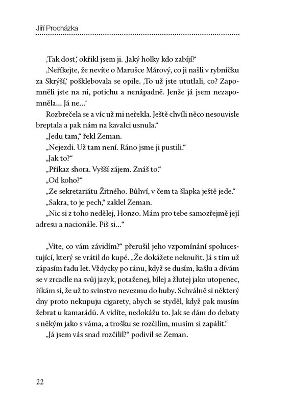 Mysleli jste, že vás major Zeman už nemůže ničím překvapit? Že znáte všechny jeho případy? A co když existuje ještě jeden?! Ten poslední… Brutální vražda mladé dívky, jejíž tělo bylo nalezeno v blízkosti zámku, kam si straničtí funkcionáři jezdí vyhodit z kopýtka. Dekadentní lovy zvěře z vrtulníku, dámská společnost a opulentní hostiny, jimž papaláši holdují, jako by Janu Zemanovi těsně před penzí sundaly růžové brýle. K nedořešenému případu se vrací ještě po letech. Proč musela dívka zemřít? Před čím utíkala a kdo ji zabil? Hledání odpovědí prověří Zemanovu loajalitu k režimu až k jejím kořenům.